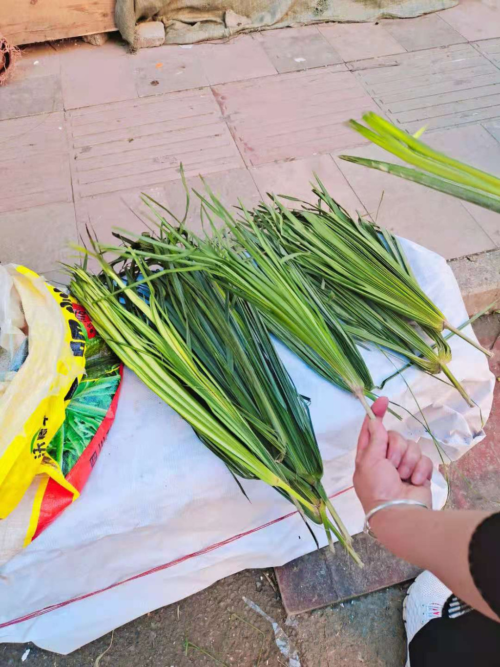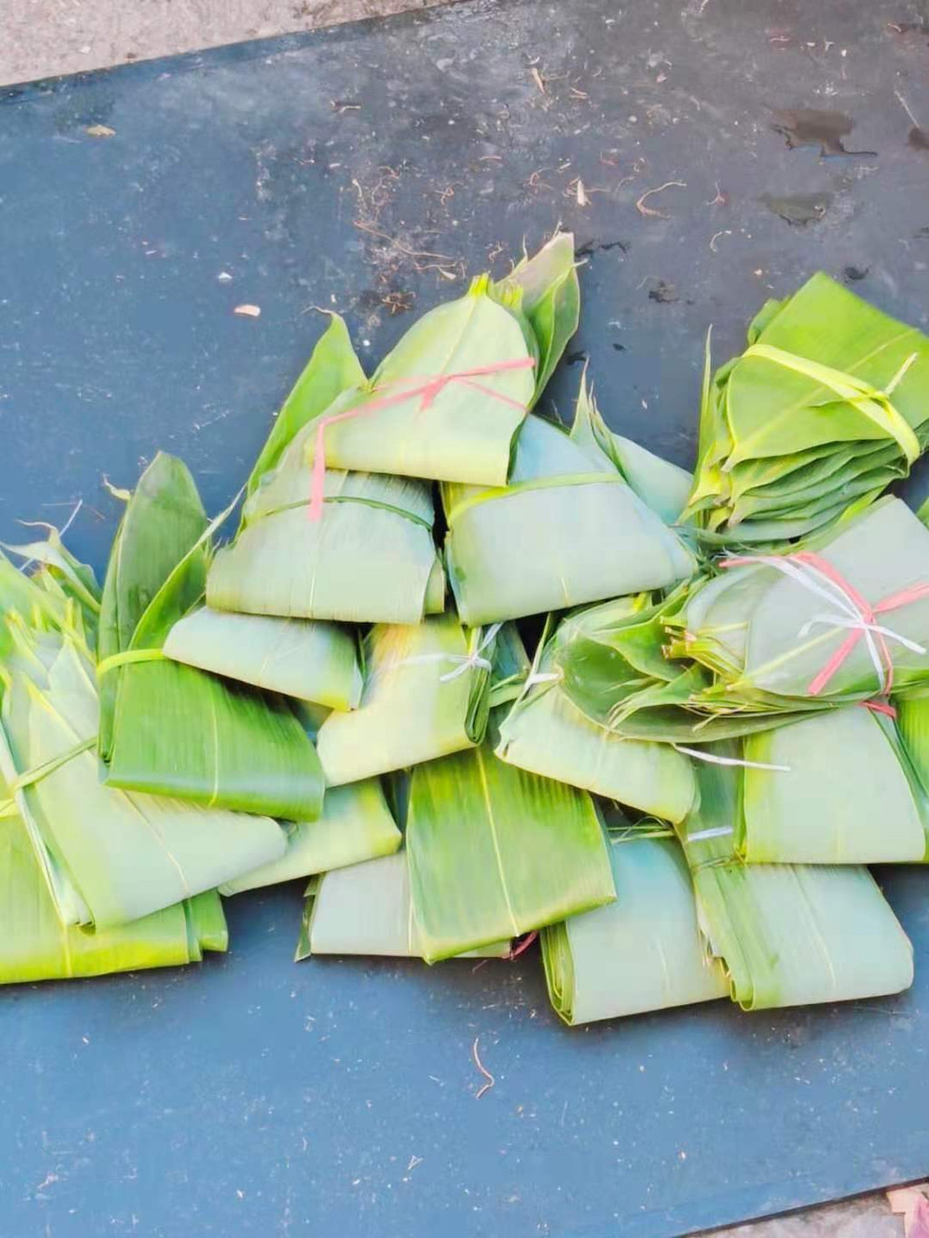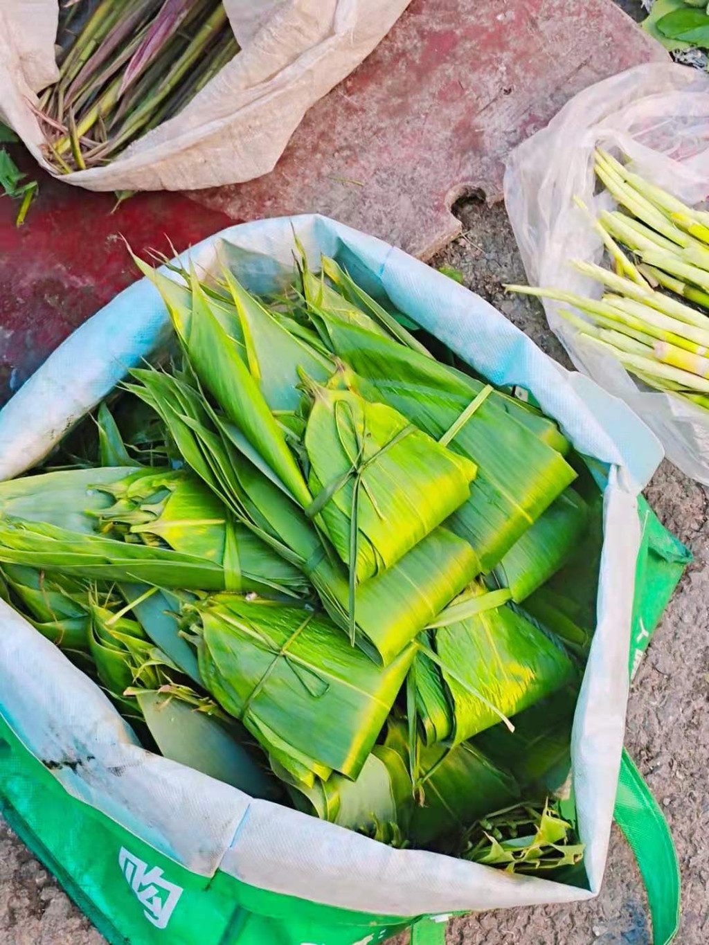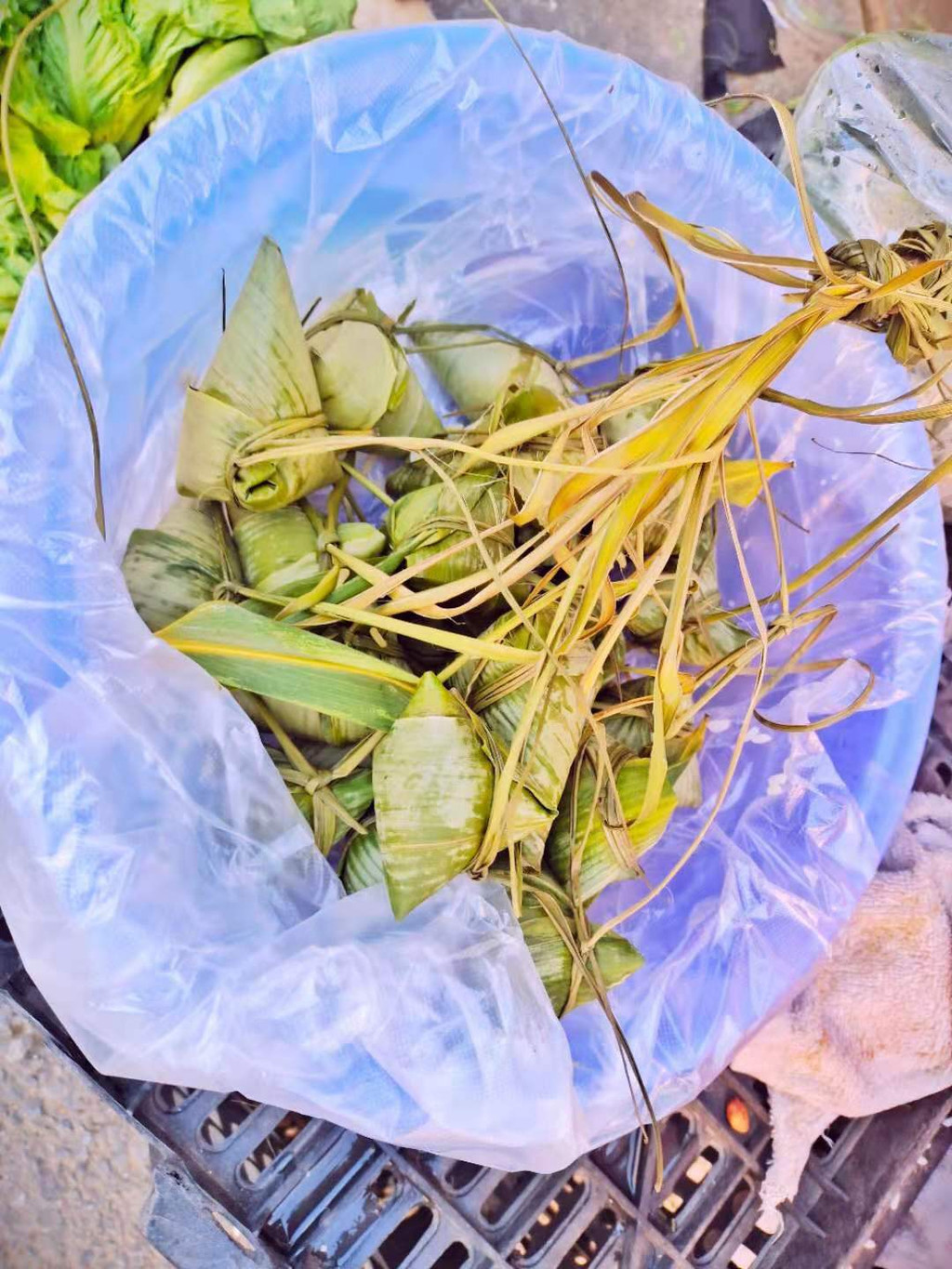 大人们会提前几天上山采粽子叶,放在水里泡着保水分。采多了就送点给亲戚,或拿去城里卖。