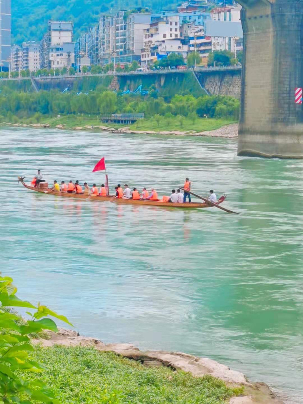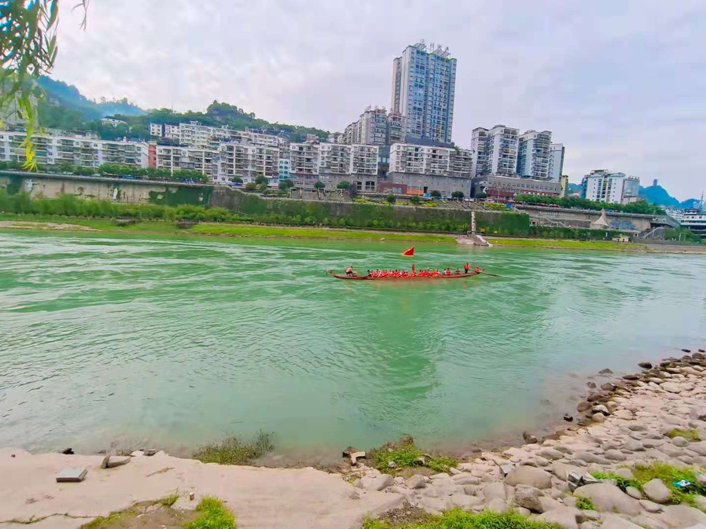 这几天在沿河乌江国家湿地公园散步, 随处可见波涛汹涌的乌江激流奔腾中,队员们身着黄色的“救生衣,手握木桨,全神贯注,应着鼓点的节奏挥动着船桨,高声喊着响亮的号子,全力向前划,“一二一二”、“嘿吼啊吼”,铿锵有力的声音响彻元霄,前行的龙舟与岸边的美景交相辉映,形成一道靓丽的风景线。