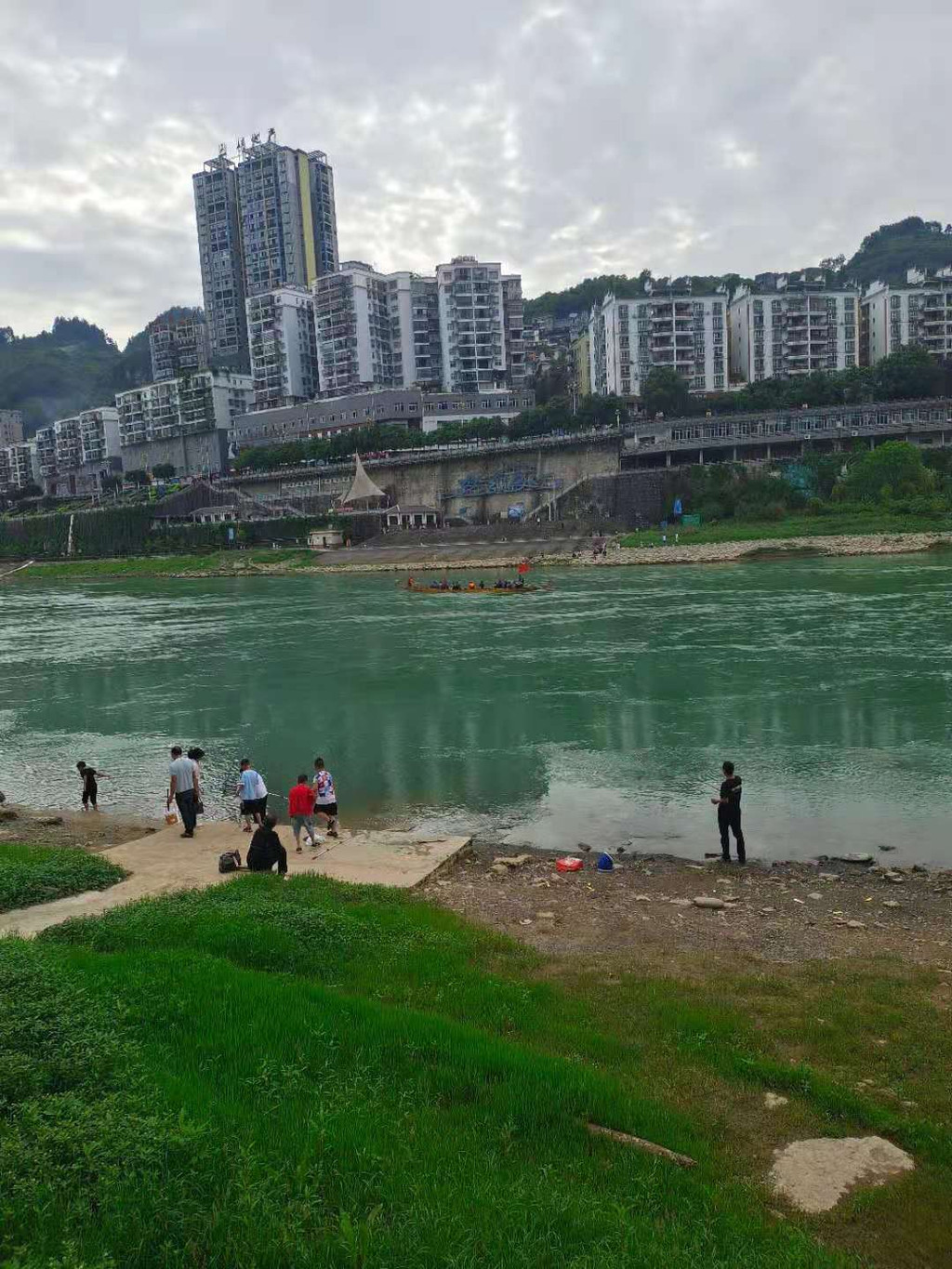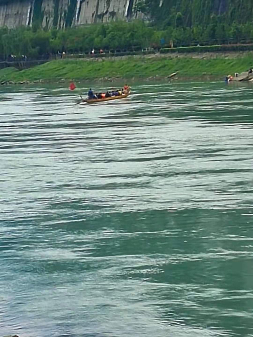 现在岸边就有很多群众在观看,甚至有呐喊助威的。