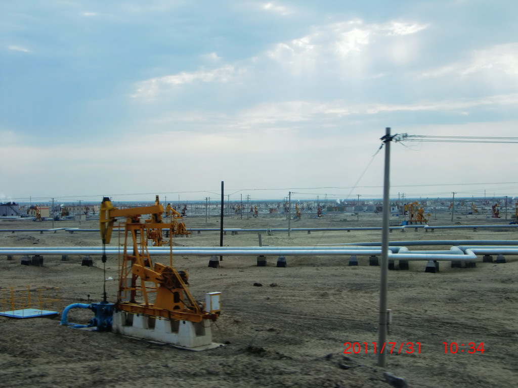 途遇大批钻探机在采石油(克拉玛依是中国著名的石油城)