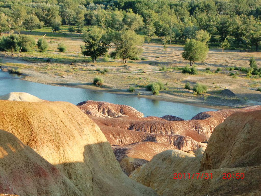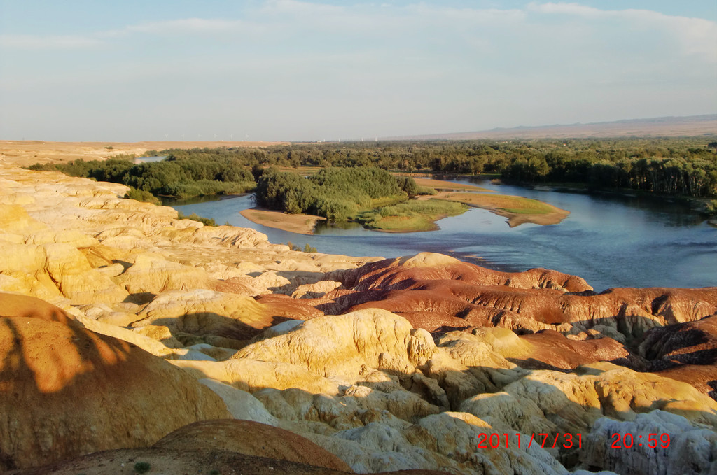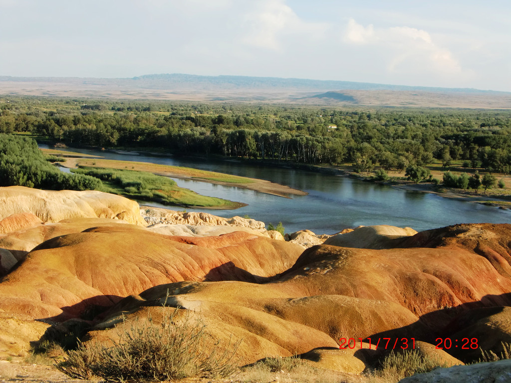 大自然的鬼斧神工,五颜六色的雅丹地貌,我国唯一一条流入北冰洋的河流—额尔齐斯河穿其而过,五彩滩地貌特殊,长期干燥地带,盛行大风,使原来平坦的地面变异出许多陡壁隆岗(墩台)和宽浅的沟漕相间的地形和陡壁险峻的小丘,维族称之为“雅丹”又名“雅尔当”。