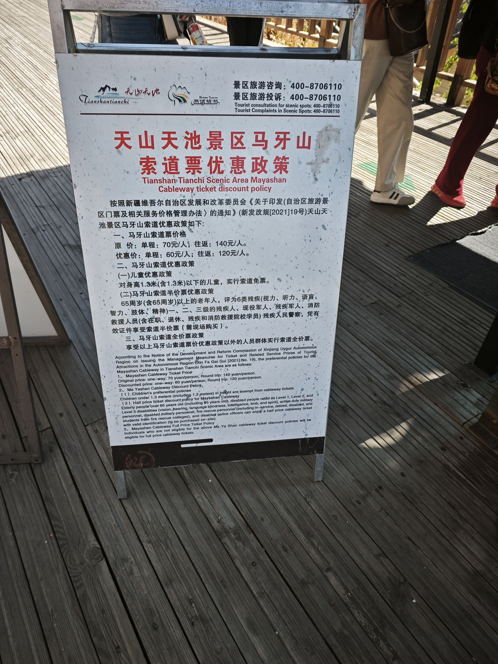从赛湖回来坐的大客车,9点钟回到客栈拿上行李,光速订好火车票,小程序:出行就上365,订天池往返车票60.9点出发最早的一班。司机又热情告诉我们存行李的地方一天10元。服务中心存是8块1小时。缆车做到1号光景台,2,3,4号观景台需要爬上去。有单独的登山路径,需要1个半小时,其他3个观景台需要2个小时左右。只是爬就需要3个半小时左右。