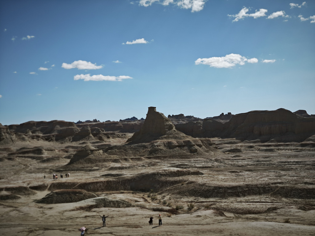 9月15日第2天买票的时候碰到有人买到魔鬼城的,又和他们搭火去魔鬼城。4男4女,两个最小的一个62,一个68,其他都是70后。他们在一起玩儿了10多年了。领队是70后的大爷。所有事情领队安排,全部无条件服从这个领队。这一天又是超好运的一天。司机在没有看到交警的情况下,直接停车在魔鬼城门口,过马路就是。又有一个人不进去,给所有人看行李。他们已经免票,就是区间车也只要10块钱。他们进去的就花费10元,我一个人62啊。他们及其热情,给我拍照,跟着他们没少去一个地方。走的时候招呼着我。万能的领队找到最佳去克拉玛依的交通,公交。我跟着即可。要不然我得打车来回,少说也得上百。