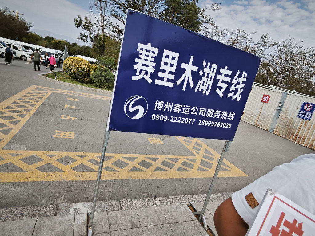 9月16日第二天他们一早去火车站去伊宁,他们不会网上订票。我帮忙弄好一个,他们需要8个人一起买票,不能分开。领队微信里面只有100多块钱,8个人票价240.他们最后7点就走了。我们都是要去赛里木湖。我告诉领队可以去博乐到赛里木湖,火车票和去赛湖的车票价都便宜。他们还要去那拉提,还是去了伊宁。我去了博乐。出了火车站就高兴了,去赛湖的车很多,举着牌子,这是太友好啦。大客车也在这里。商务车40一位,可以去酒店接。大客车30一位,找到车站就可以等着上车。