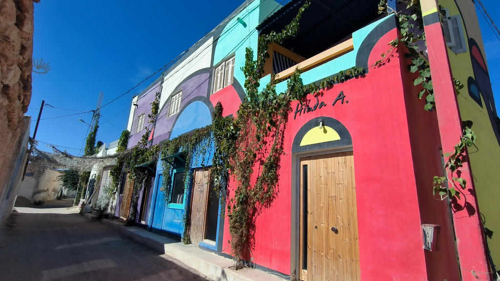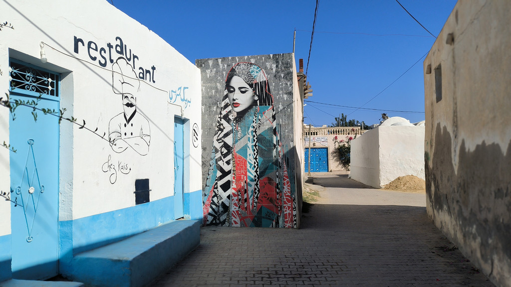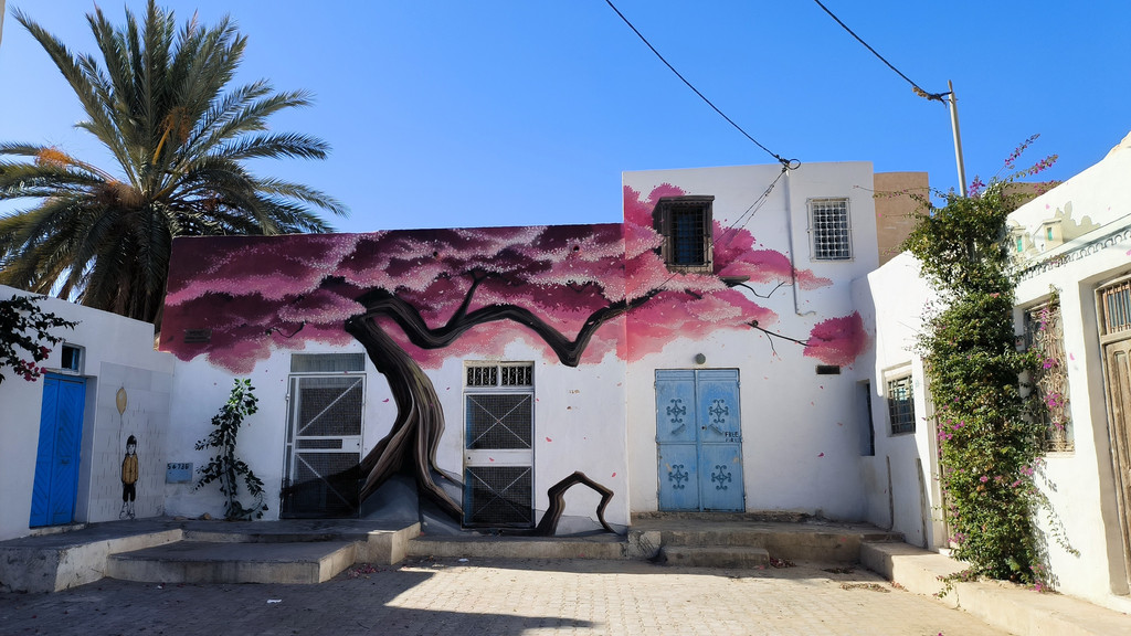 岛的面积并不大,现在还有很多原住民在这里居住,在这里我们路上正好遇见一群学生上学,学生非常友好邀请我到了他们学校去看看,和他们合影,学生们朴实和热情感染了我,让我至今难以忘怀。 我们去了Djierbahood涂鸦村,一个街头艺术家的天堂,这个露天的涂鸦胜地,为宁静的村落带来了人气,每一幅涂鸦或展现人文、或环保、或深沉、或生活。