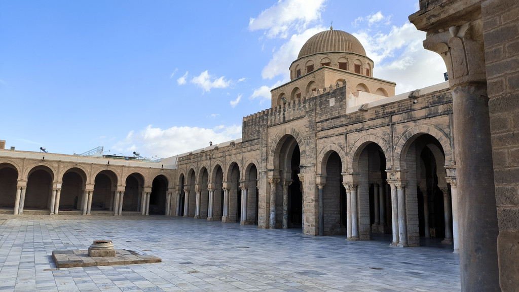 B:奥克巴大清真寺:站在十几公里之外,就可遥见大清真寺高耸的尖塔,它已成为凯鲁万的标志性建筑。凯鲁万(Kairouan)被誉为“50个清真寺之城”,是突尼斯人的精神家园。奥克巴清真寺是北非最早的伊斯兰教教育和文化中心,也是北非马立克教法学派的学术中心,在穆斯林中享有崇高地位,曾培养了大批伊斯兰教学者和法学家。被列为联合国教科文组织重点文物保护单位之一。奥克巴清真寺是北非历史最悠久、规模最大的清真寺,且是与麦加、麦地那、耶路撒冷齐名的世界四大清真寺之一。突尼斯人认为,到凯鲁万朝觐7次即等于去麦加朝觐。