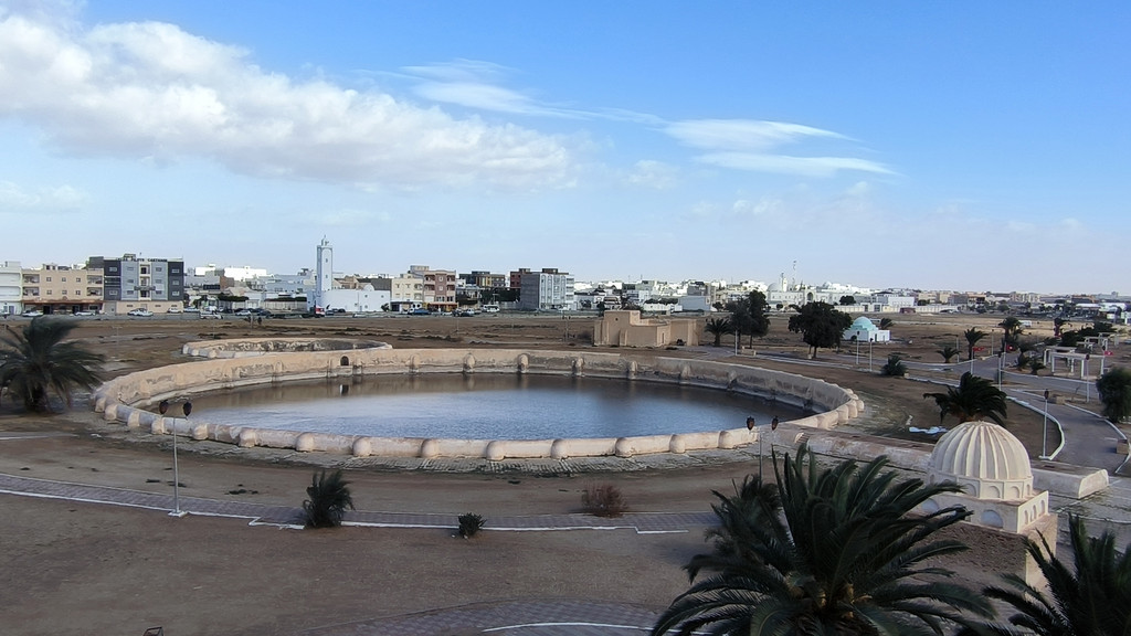 A:阿格拉比特大蓄水池----世界文化遗产:公元9世纪,凯鲁万地区缺水严重。彼时天旱少雨,加之该地区又处于海平面之下,用水极其困难。当地人修了15个蓄水池用于解决饮水。曾经阿格拉比特王朝留下的印记现在只存下两个供游人参观。站在专修的高台望去,凯鲁万人的智慧一览无遗。