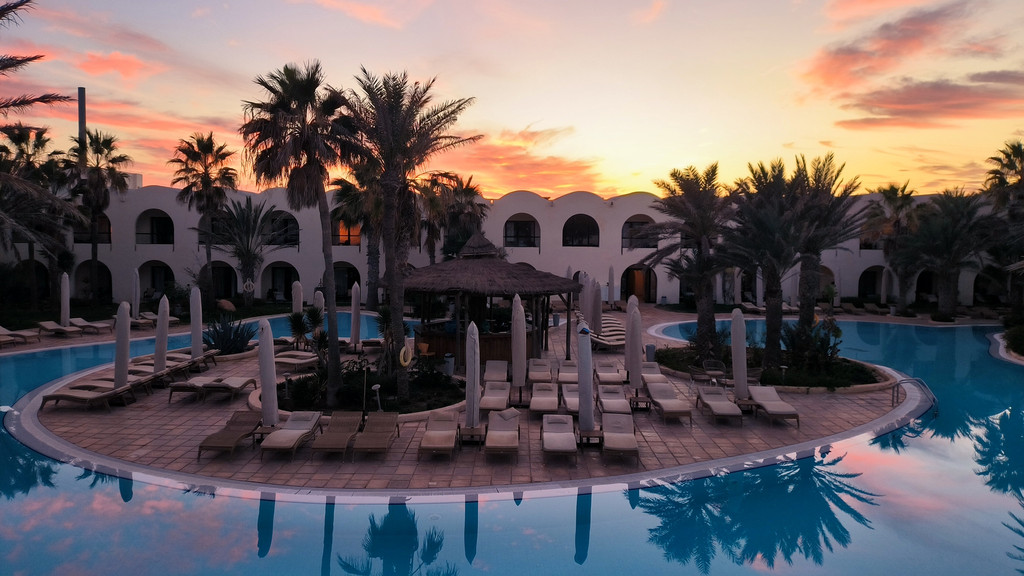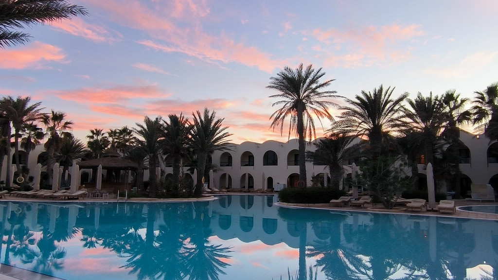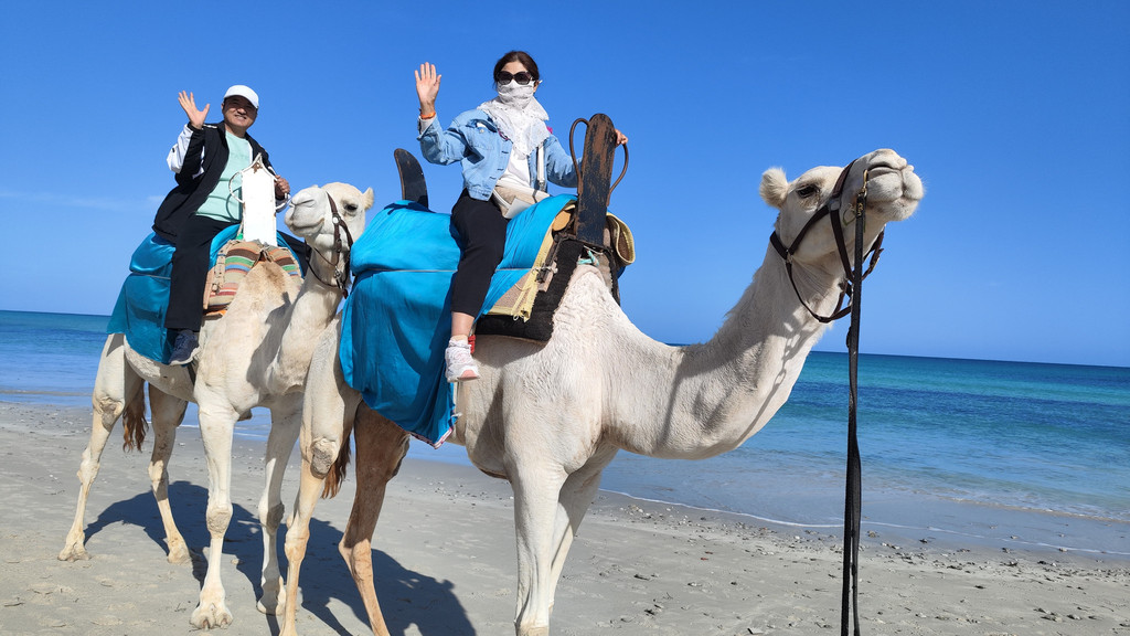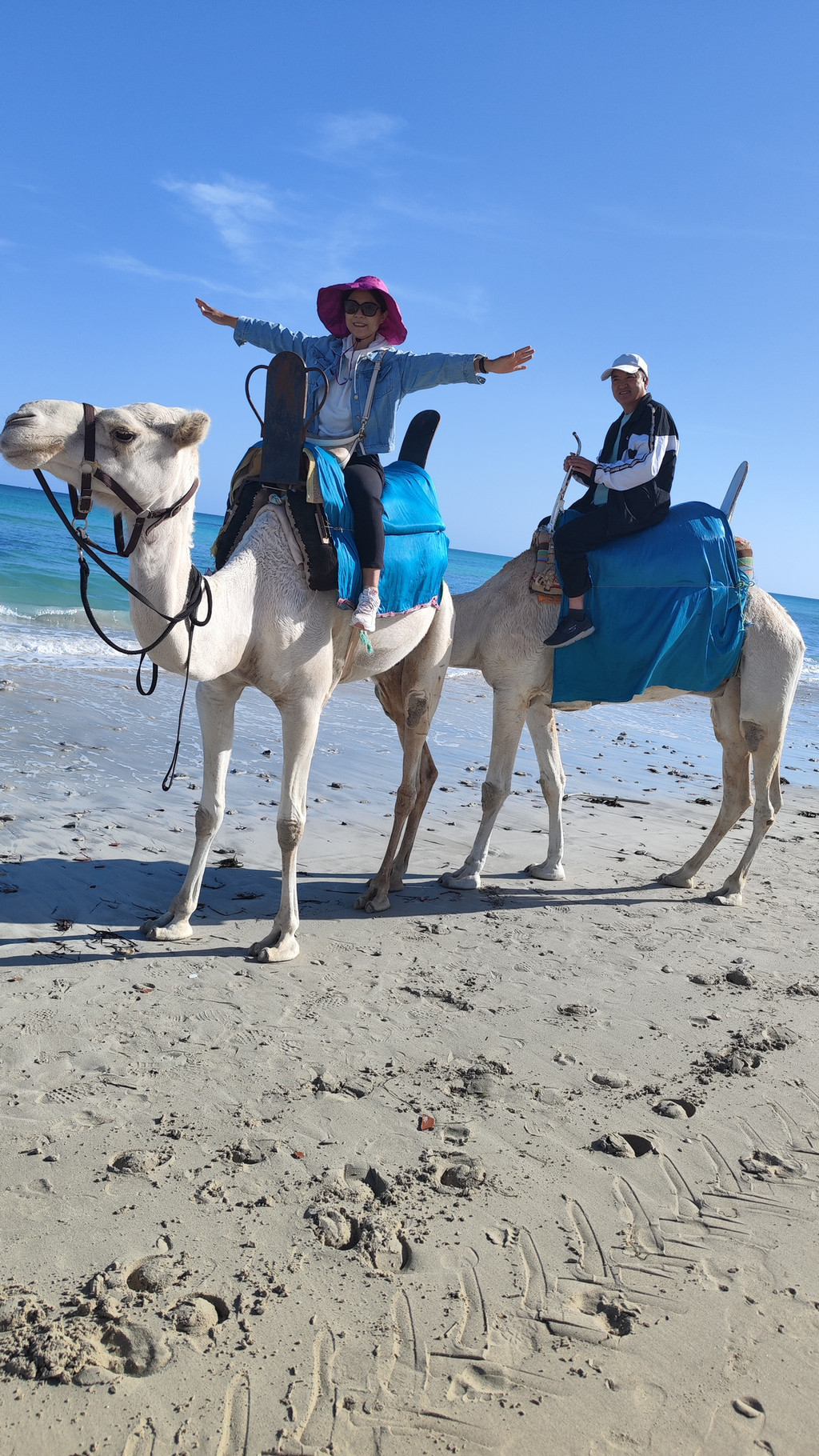 5.杰尔巴岛:2010年被联合国教科文组织才评为世界自然遗产,突尼斯的度假胜地之一,岛上有很多欧洲人利用假期来此地度假,我们在携程上订的性价比超高的度假酒店------杰尔巴岛圣提多海滩酒店,包早晚餐才300多人民币,酒店有游泳池,服务很周到,岛上风景优美,阳光明媚,沙滩上可以骑马和骑骆驼的项目.时间半小时60元,骑着骆驼在海边徜徉别有一番情趣。还可以坐船出海看日落,特别美。我们在吉尔巴岛上住了2个晚上,非常喜欢这个迷人的岛。