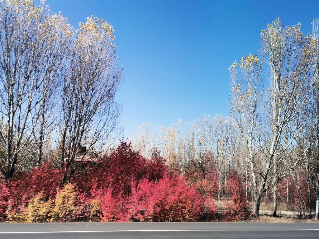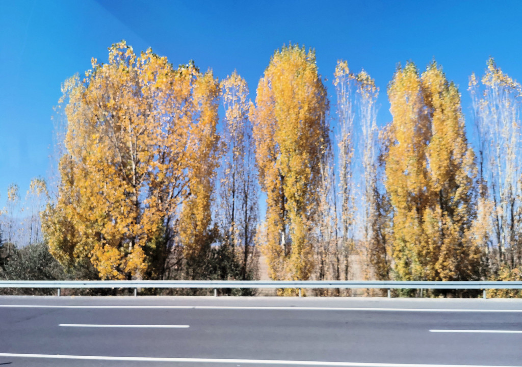 路上的风景很漂亮。只是大巴开的飞快,还没对好焦距呢,景致已然一幌而过。再就是那层玻璃,造成各种反光。大巴的玻璃窗都是封闭的,打不开,除了用来逃生那块,旁边挂着个小铁锤,也不敢为了拍张照片,就砸玻璃啊!只好将镜头贴紧玻璃窗,以减少反光干扰。