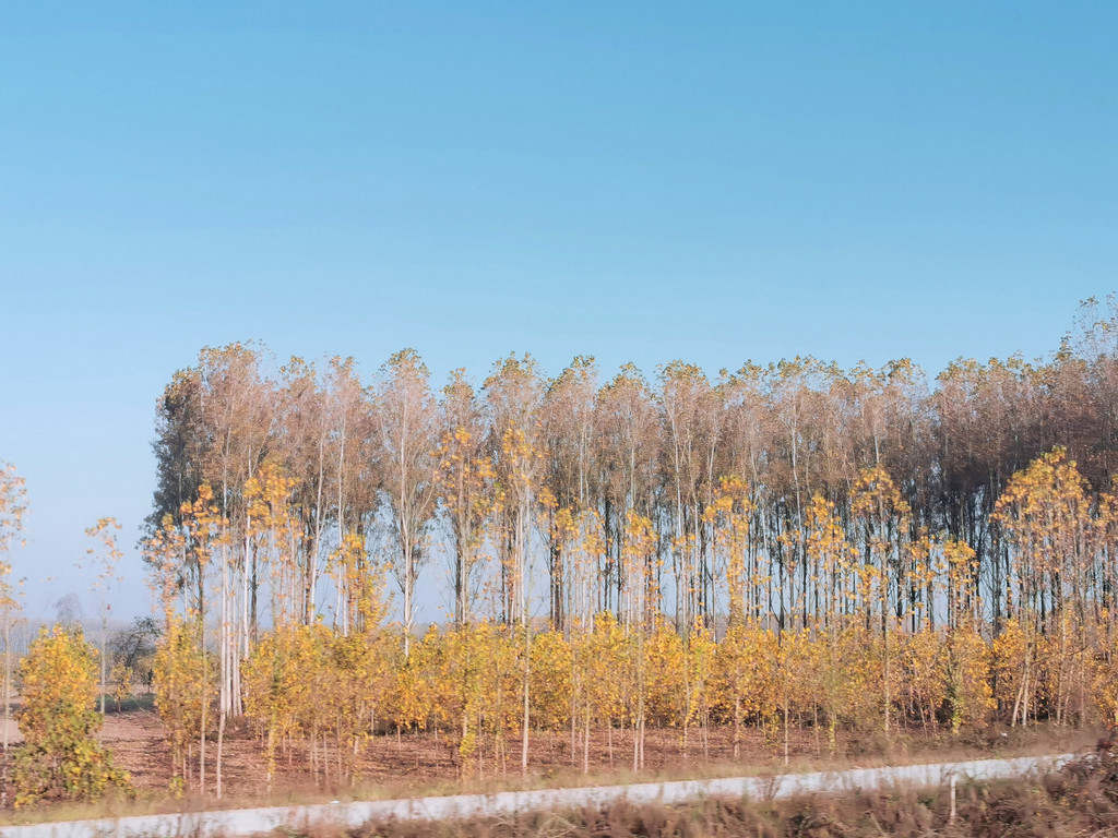 一路秋风吹叶黄。暑热萧瑟去,是天凉。枯枝疏影不含香。寻常事、只是换新妆。