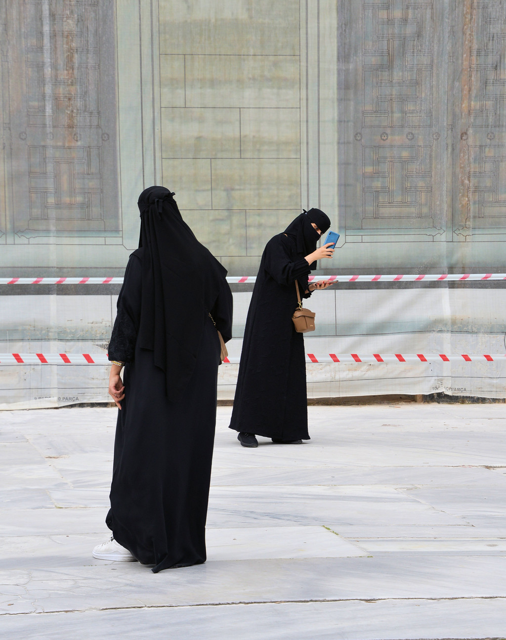 这两位,咋说涅。您內从头包到脚,照的和被照的都是一袭黑袍,分得清照片里的是谁吗?真像相声里说的,人要都长一样,照相馆没生意了,拍一张,冲几百份儿,大家一分就完了!穿的都一样涅?!
