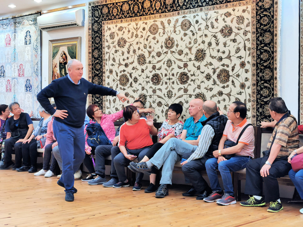 土国行,被带到壁毯厂家。一块块大大小小的壁毯展示出来,的确漂亮。当然,价格也漂亮。服务也让游客放心,只要您肯掏腰包,壁毯直接给您寄家去!看看,多方便,多省事,还不买?啊!啊!!啊!!!