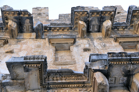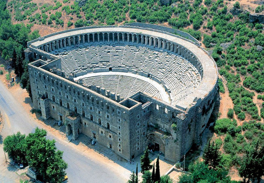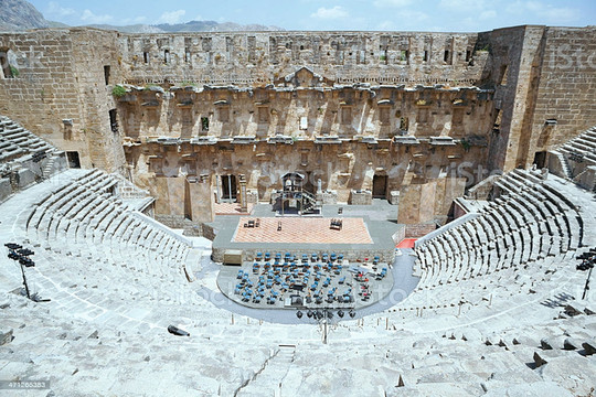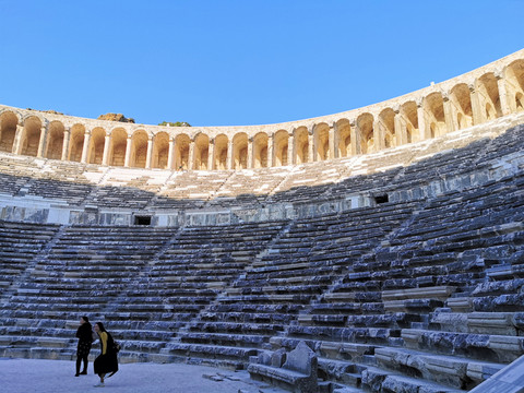 这是在此次旅游中看到的最完整的露天剧场(Aspendos Theater)。当我们抵达剧场时,人家还木有开门接待游客呢!这就是旅游的辛苦之处,大老早的从温暖的被窝里爬起来,匆忙洗漱、匆忙吃早餐、匆忙打行李、上车开始打盹了……就是为了赶行程。阿斯潘多斯剧场位于土耳其的西南部,阿斯潘多斯古城早在公元前四世纪就开始建设,前333年被亚历山大大帝占领。前190年成为罗马帝国的同盟,前133年正式并入帝国。之所以记录这几个年代,是说明该露天剧场是在罗马帝国时修建的。设计师是Zeno。看台共有39阶,可容纳2万人!除了迎接成千上万的游客,每年的6月中旬开始至8月还举办歌剧节。