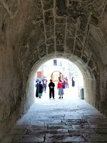 又发现,在最顶一层的后面,居然是一圈拱顶回廊,清晨的阳光洒入,门柱形成了漂亮的光影效果。没有白上来一趟,尽管有些腿软,值了!