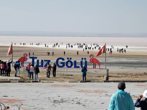 前往土耳其首都安卡拉的途中路过图兹盐湖(Tuz Lake)。当导游告诉我们大巴的左方就是著名的盐湖了,大家都挤到左侧拍照。可惜,车速过快,单反相机还凑合能抓拍一两张,手机拍的几乎没有清晰的。又开了很长一段,才到了停车场。