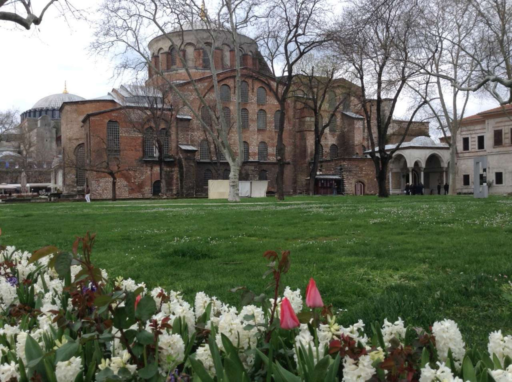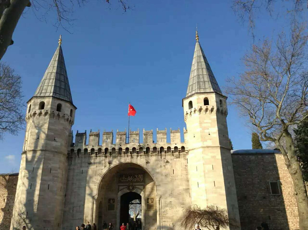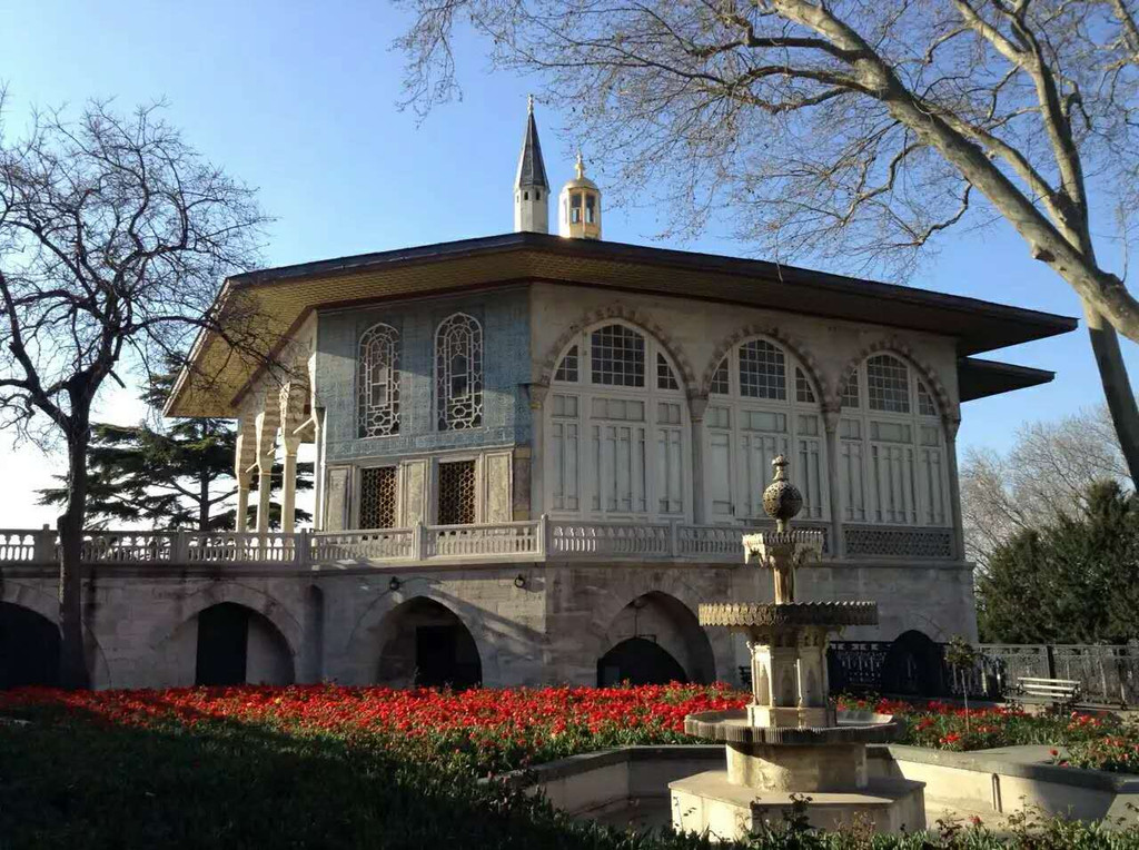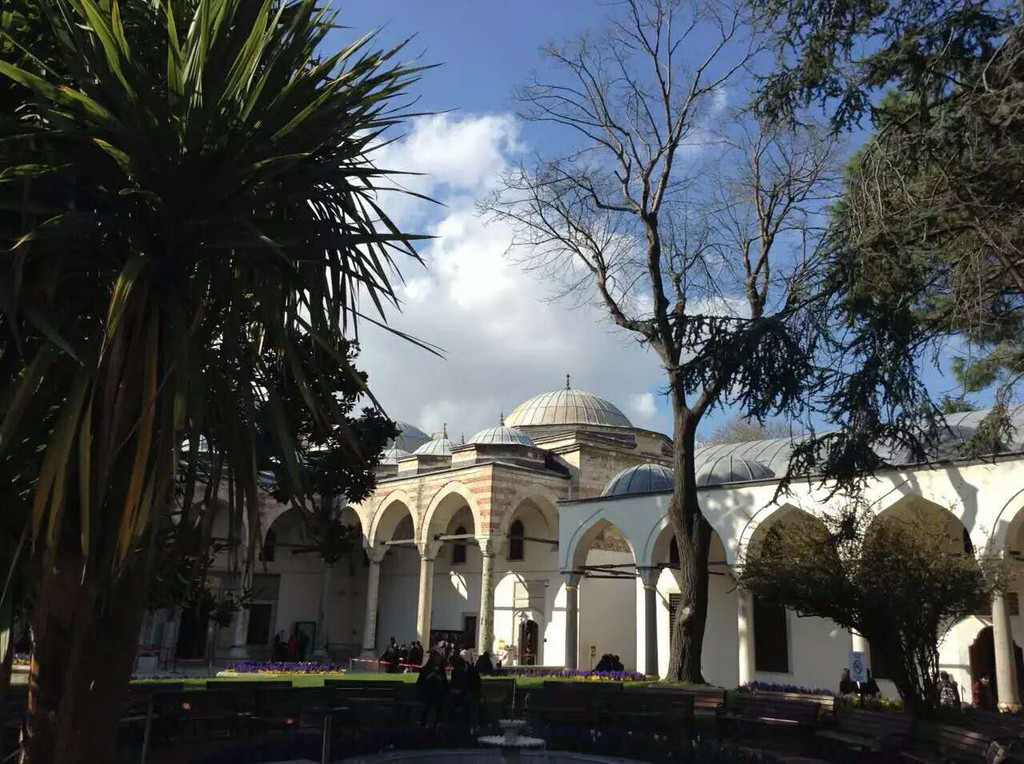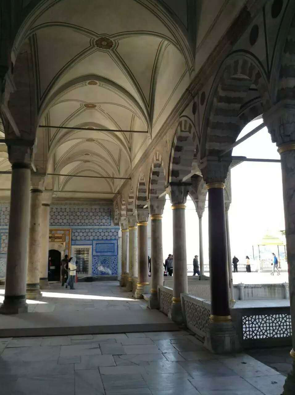 今天下午游览了托普卡帕宫。这是奥斯曼帝国苏丹在城内的官邸。说实在它既没有故宫博大,也没有布达拉宫雄伟。但它建在愽斯普鲁斯海峡旁,风景优美。里面的瓷砖装饰和展示的帝国战掠品均有很高艺术价值。可惜不让拍照。