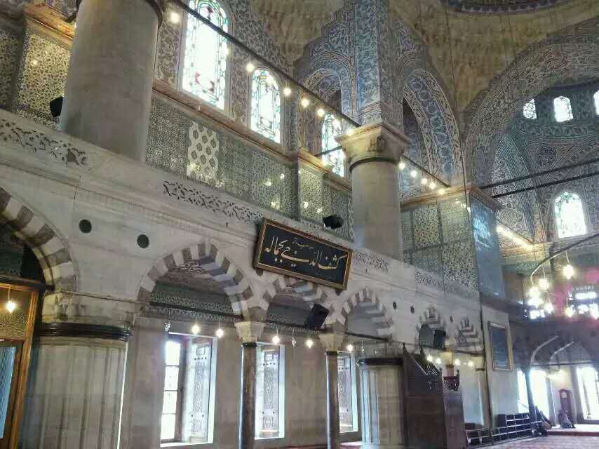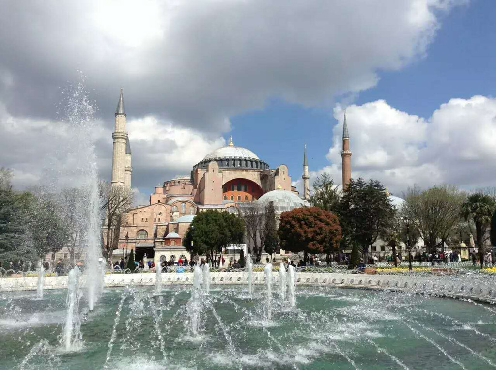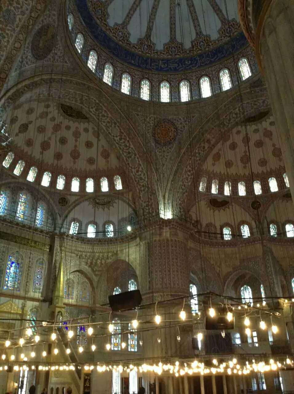 离开旅行两周的欧洲来到横跨欧亚大陆的土耳其伊斯坦布尔。知道这里刚发生恐怖事件不太安定,我们做了防范措施,酒店方面派奔驰房车直接从机场接到酒店。我们的理念和仓央嘉措一样,既顺从自然的召唤,也听从佛祖的安排!上午参观了举世闻名的蓝色清真寺。清真寺外观气势恢宏,内部精美绝仑,装饰之精细在伊斯兰世界首屈一指!今天最有收获的当数参观地下水宫。这个深藏地下的蓄水宫殿有足球场大,建于公元六世纪的东罗马时期。有三百三十六根巨大的罗马柱支撑。里面最多蓄水可供当时市民用一个月。地宫里发现了古希腊神话中美杜沙女神像。据希腊神话,谁见到她都会马上变成石头,吓得我没敢多看。我们坐在水宫一角的小咖啡厅喝着当地红茶。感觉到时空的穿梭。被这人类另一亇奇迹深深折服!