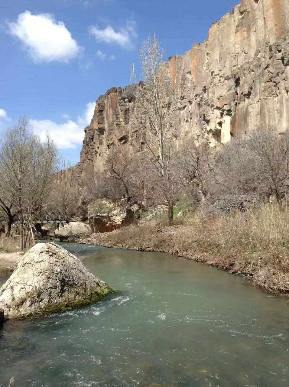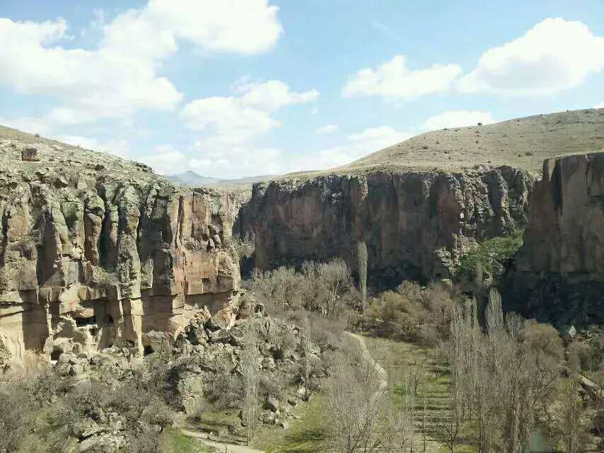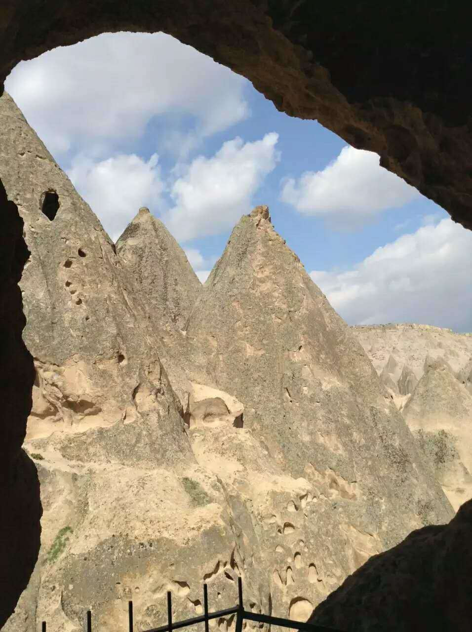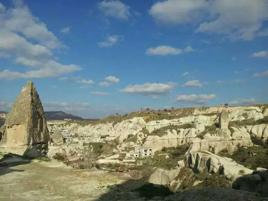 今天跟当地团走了卡帕多奇亚绿线。主要游玩了格雷梅全景,地下城,洞穴修巨阮,鸽子谷,并在峡谷徒步4.5公里!地下城最早是由基督教徒逃避罗马王朝的追害和禁教,在地下建的秘密教堂和生活场所。最深达地下八层,65米深。很是状观,但手机拍不出效果,只能感受!一行人中有荷兰人,葡萄牙人,新加坡人,韩国人,中午一起就餐时大家用英语谈得火热,笑话连连,笑声不断。没有国内旅行团吃饭时抢菜的情况。告别时互道珍重,互致谢意。总之,越来越喜欢跟老外一起玩,一起互动!这是在国外旅游特有的乐趣!