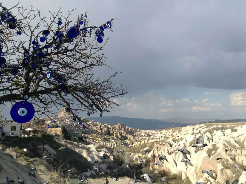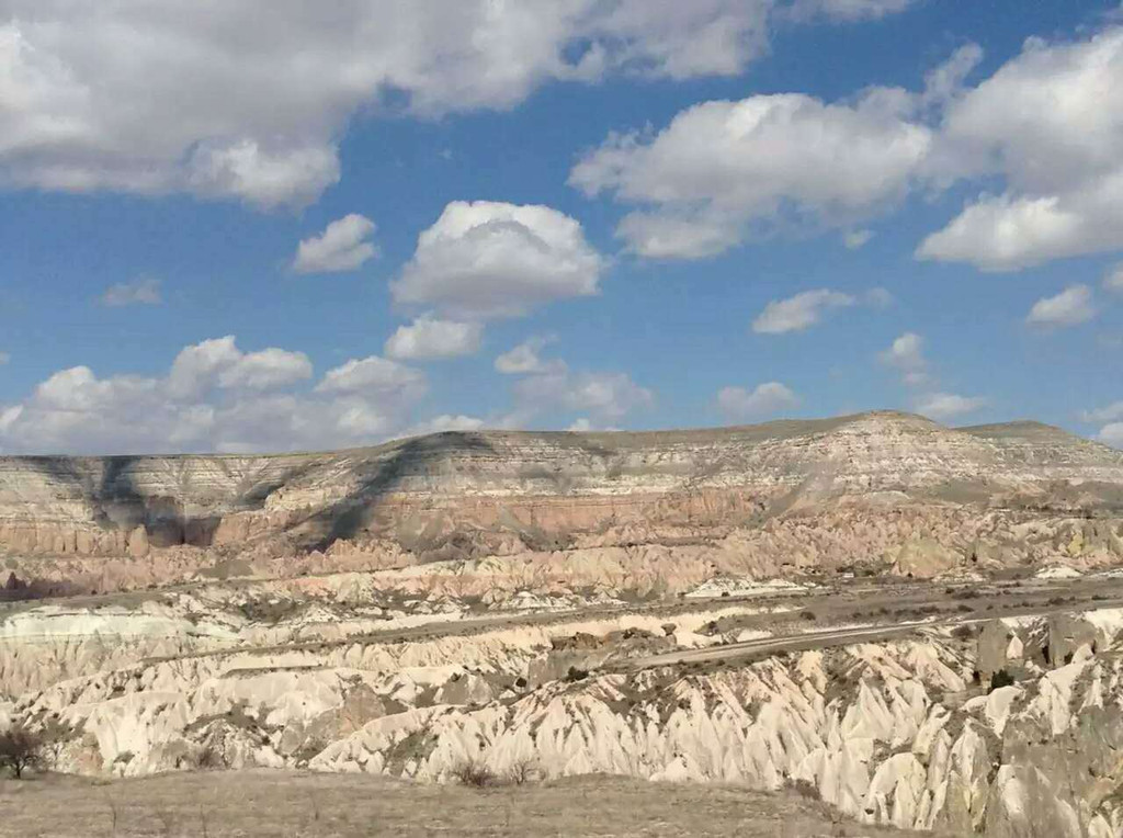 今天在卡帕修整,在洞穴酒店喝茶聊天。在格雷梅小镇闲逛。只有二条街的小镇游客稀少,偶尔过来的路人或店铺老板都主动跟我们打招呼,听说是中国来的,跟我们用中文说你好,很温暖!一早在镇上小山坡上看日出和热气球放飞。天气一般,风较大。只看见一点红霞。酒店老板塞义夫说我们坐气球那天运气好,晴朗无风!另外,这里不少教堂都是洞穴式的。是基督教的圣地,可惜我们这方面知道储备不夠。今晚要坐十个小时夜大巴到棉花堡---联合国教科文组织认定的世界自然与文化遗产!