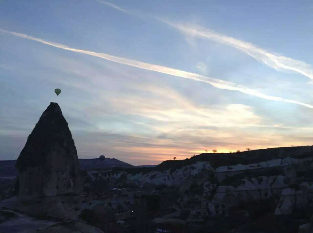 今天飞到土耳其中部的卡帕多奇亚,住进峡谷里有八百年历史的洞穴(以前是洞穴式教堂,现改为酒店)。猎奇之情油然而生~终于可以做一回洞穴人啦!;老板赛义夫曾是空军飞行员,现也驾驶热气球,服务生哈桑是一名旅游专业学生,两人均操一口流利英语;环顾酒店四周地貌己被震撼到,六百万年前的火山爆发,在这一地区创造了大自然的奇迹,山石奇特,峡谷状观。明天的洞穴游又会是怎样的不同凡响呢?在醉人的夕阳中充满期待……