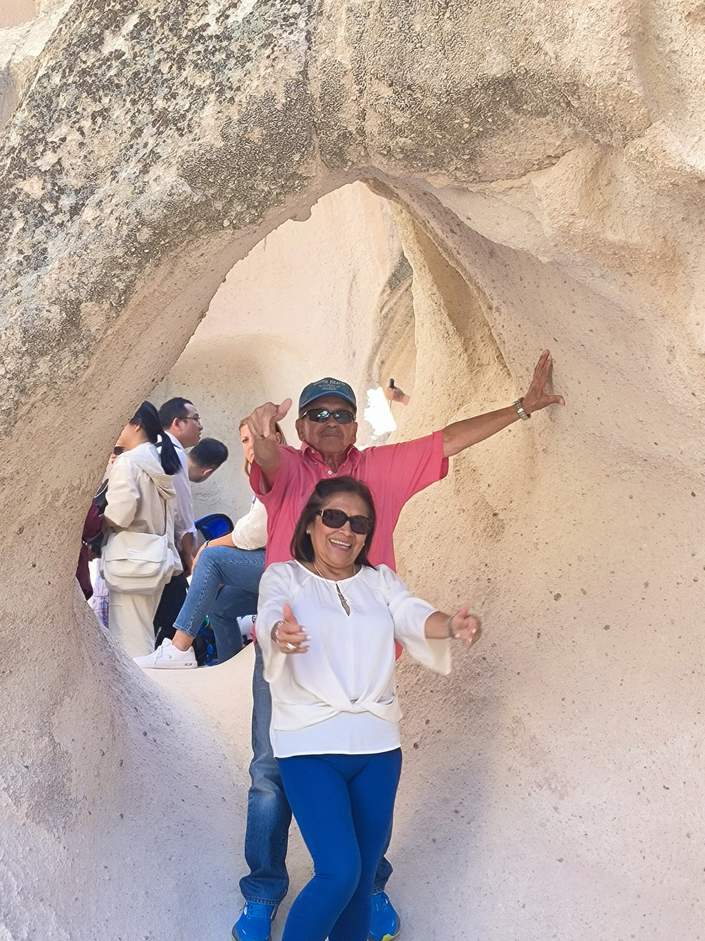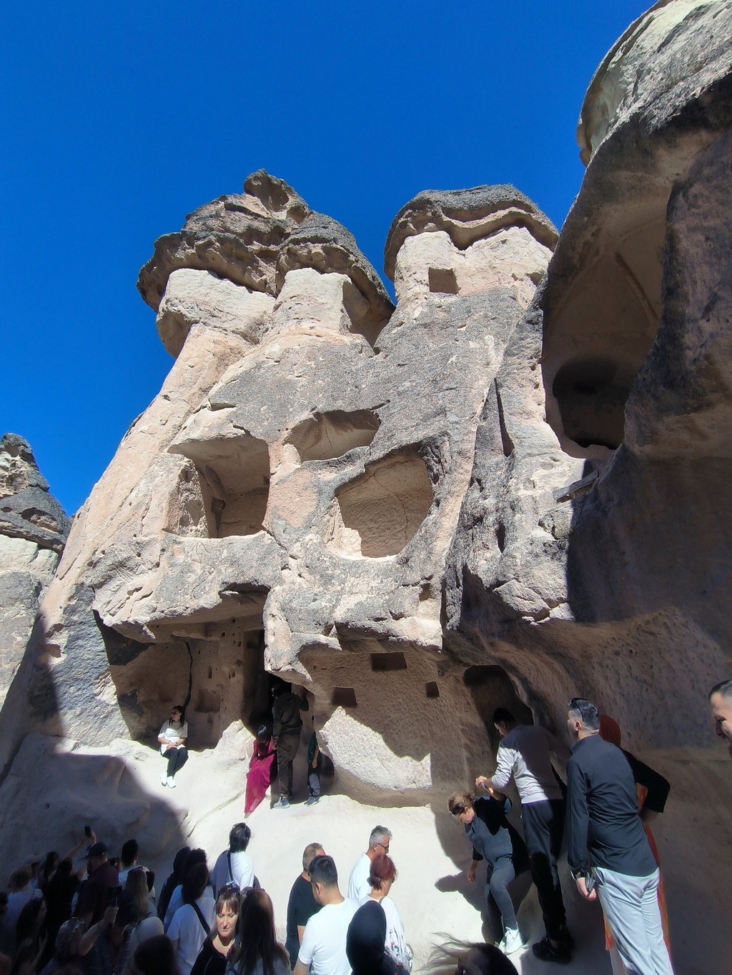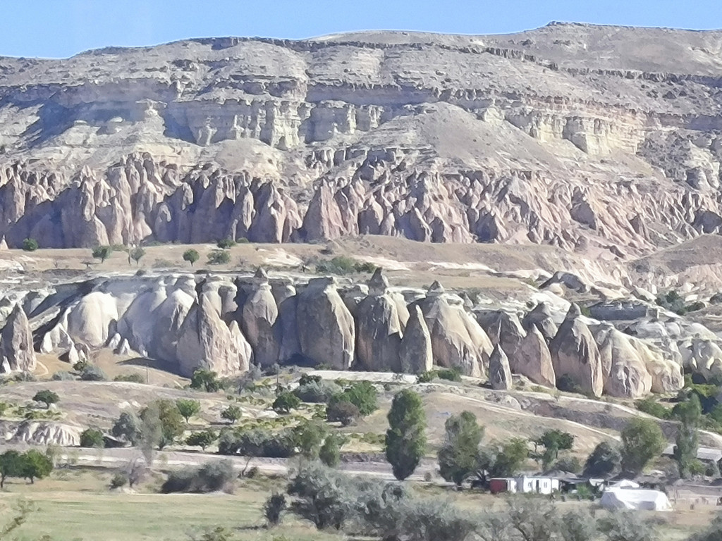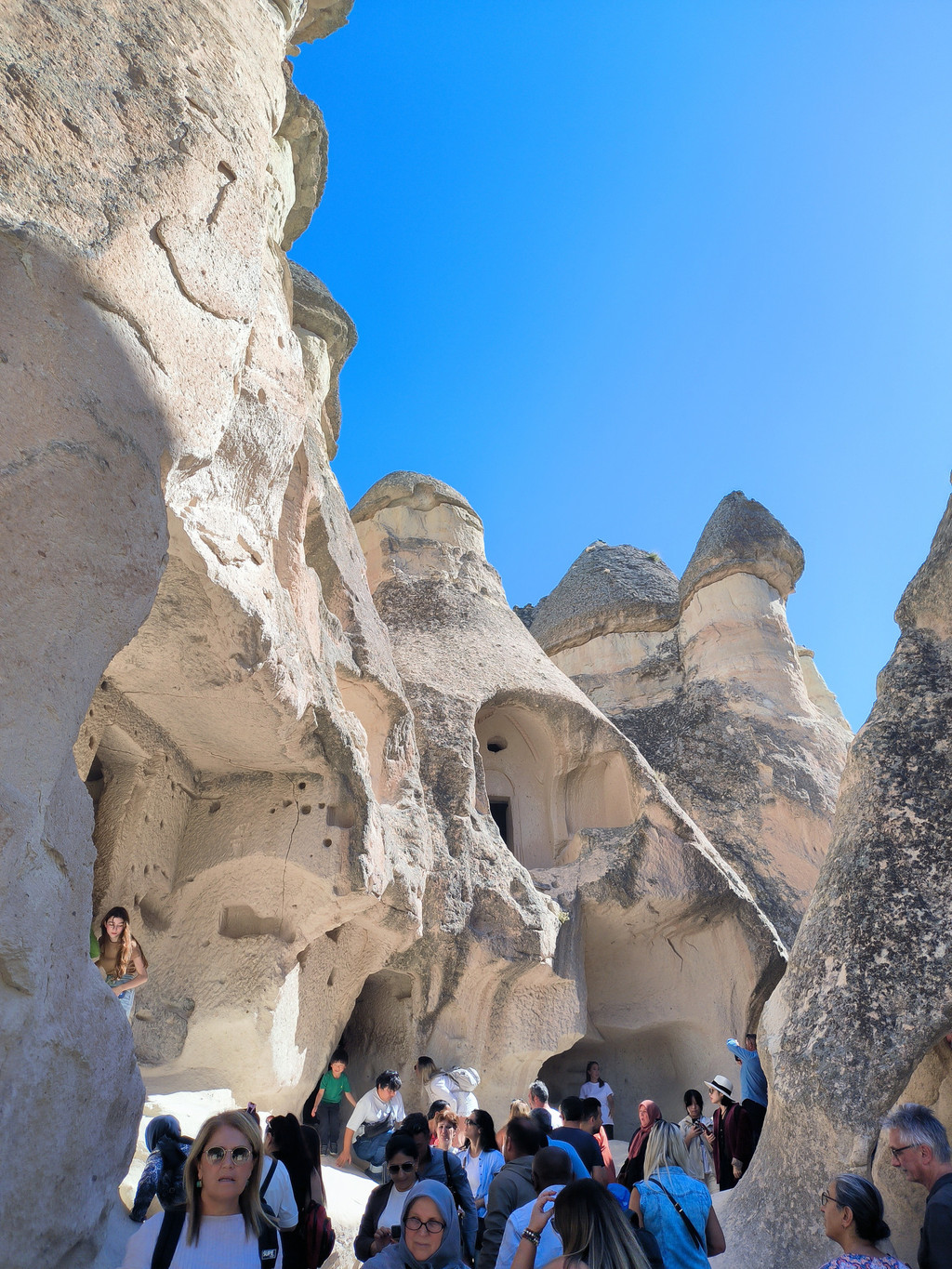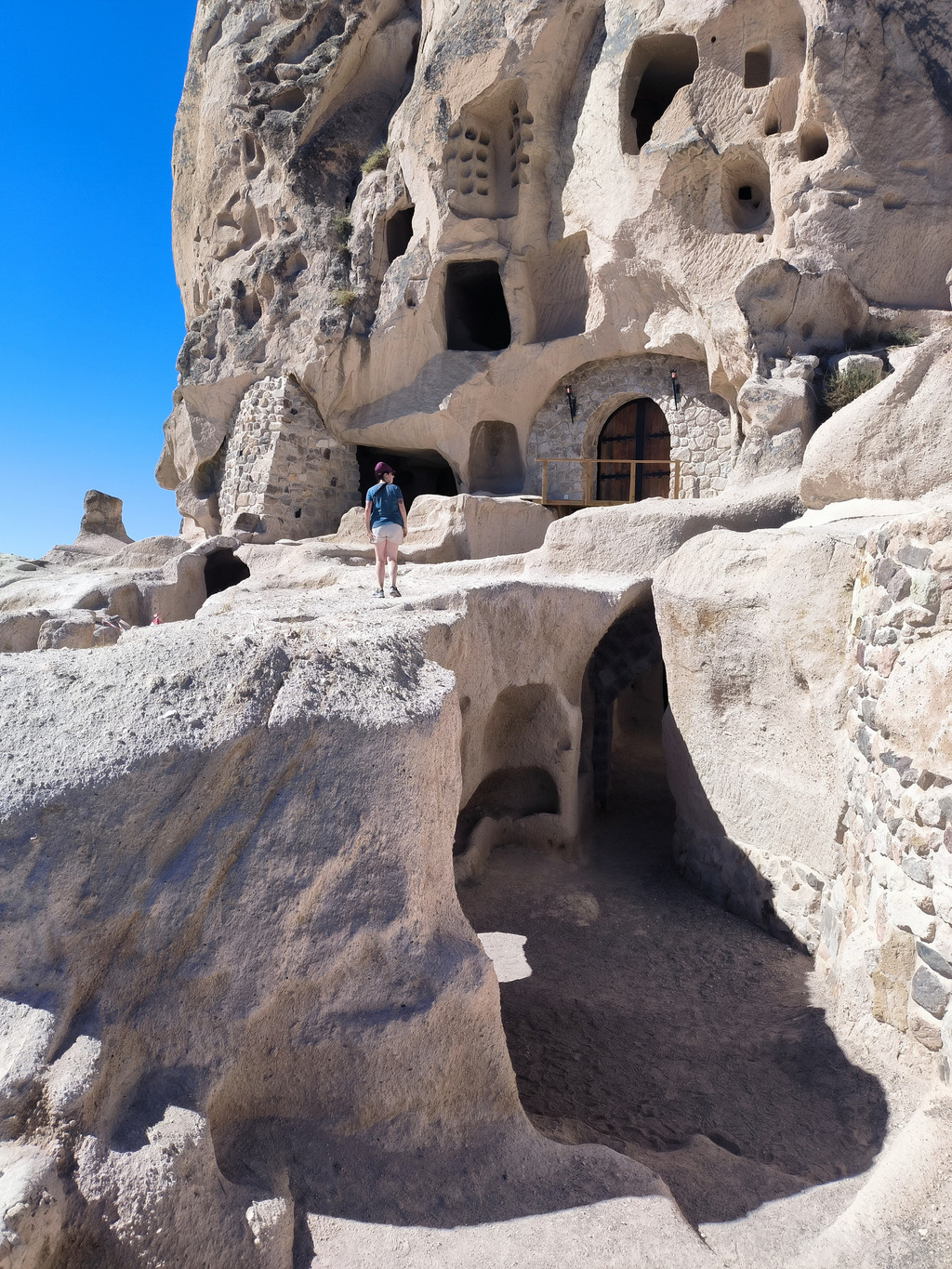 走出地下城前往乌奇萨城堡,实际上是一座60米高的石山,也是这一带的制高点,方圆几公里内都能看到,乌奇萨是“第三个堡垒”的意思,早期居民为防御外敌入侵,将山岩挖空建成相互连通的要塞,相连形成庞大社区,巨岩上有数不清的洞口,外敌入侵时,平时就在洞穴内存好水粮,外敌入侵时居民可以躲进洞内,几个月不必外出。让卡帕多奇亚久负盛名的还有格雷梅露天博物馆,博物馆并非现代新修的建筑物,而是在自然地貌的基础上形成的洞窟群,包括拜占庭风格洞窟教堂、礼拜堂和修道院多达30余座,均位于陡峭的山谷之中,大多建于公元九世纪至十三世纪之间,这些教堂最初由躲避政治迫害的基督教徒所修,为掩人耳目他们将山体凿空修建教堂,