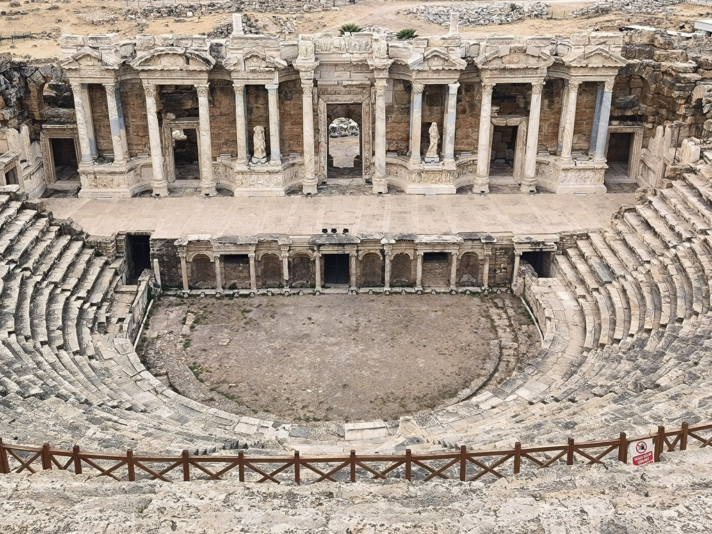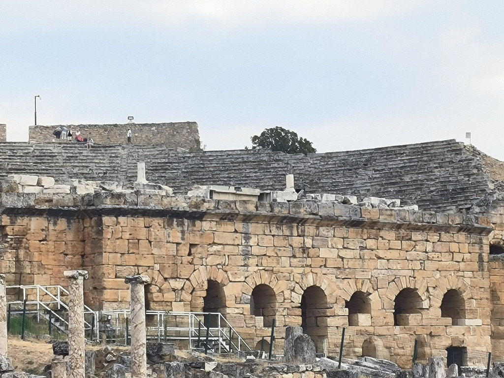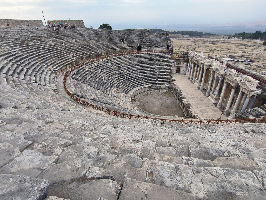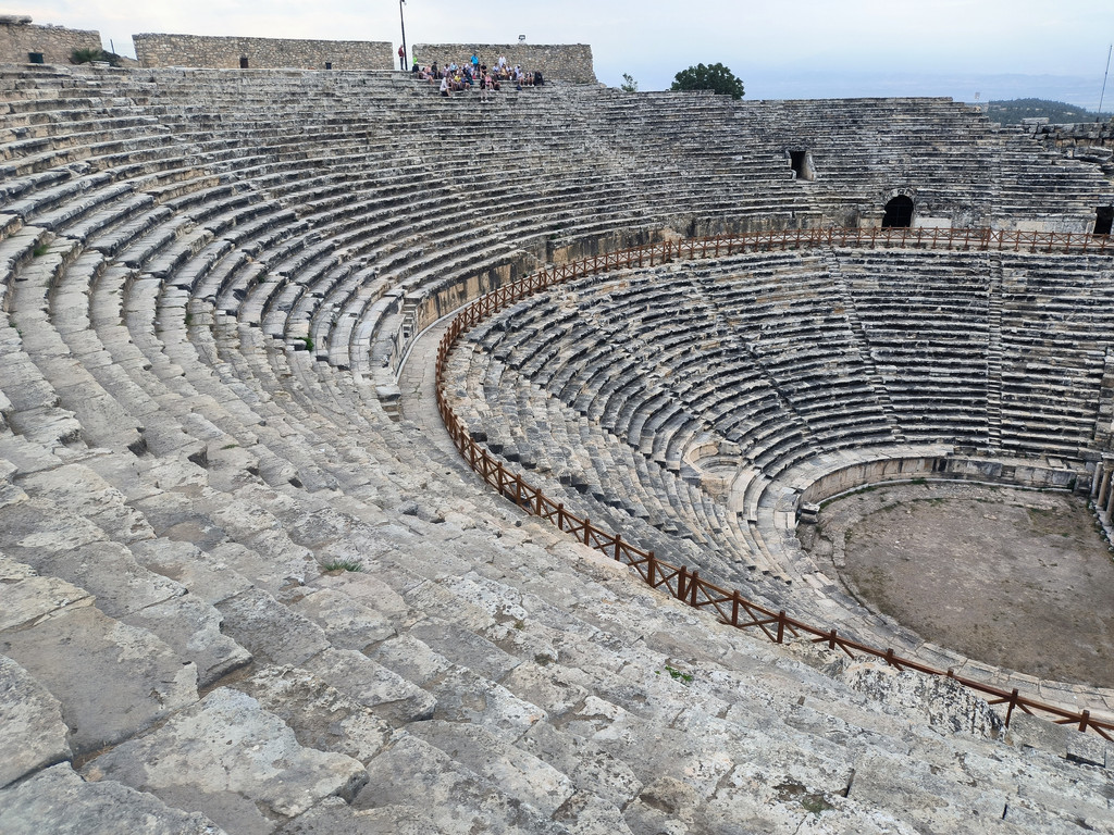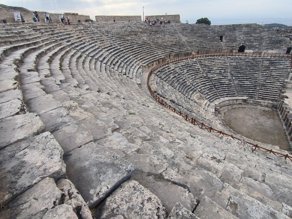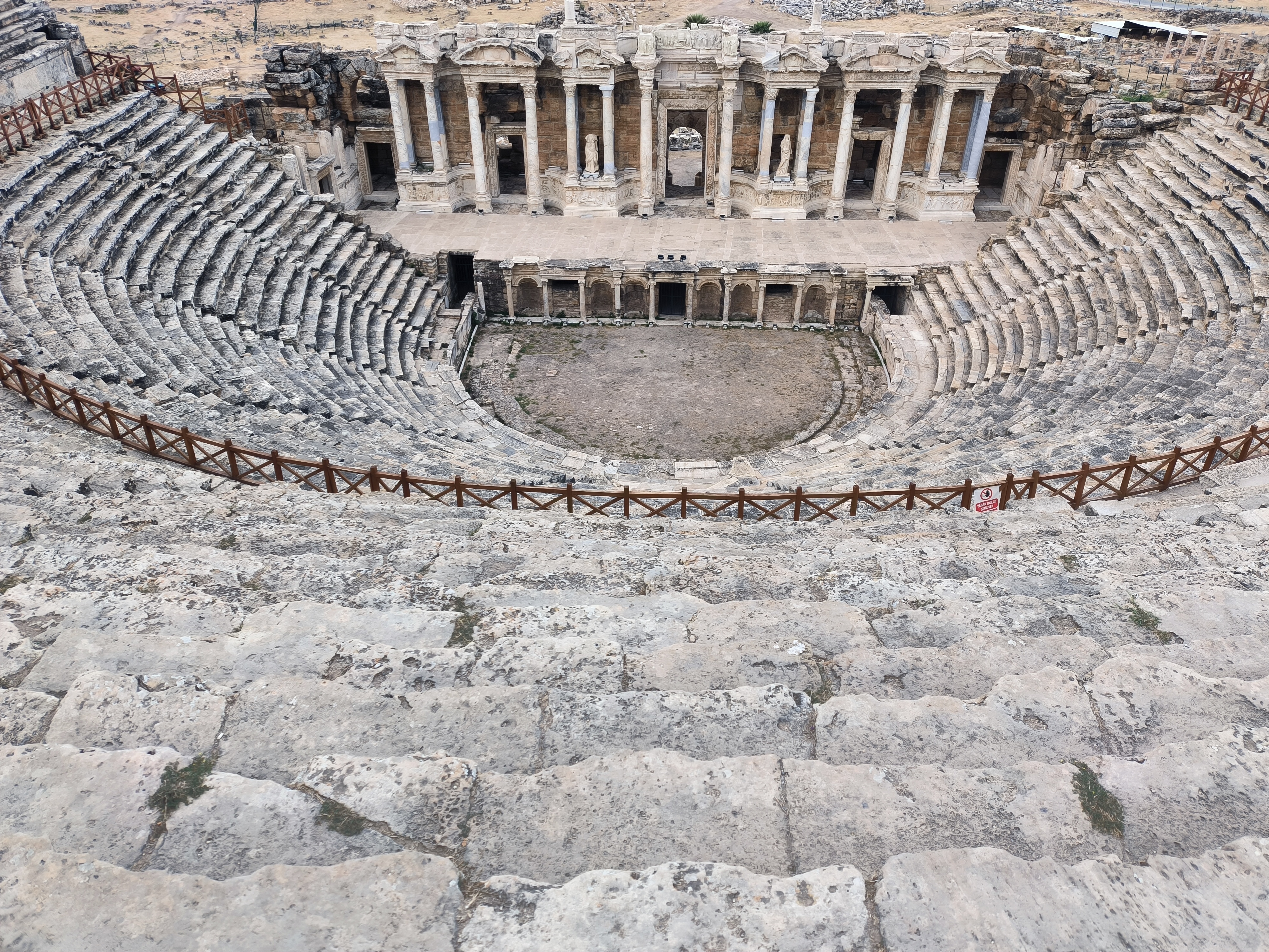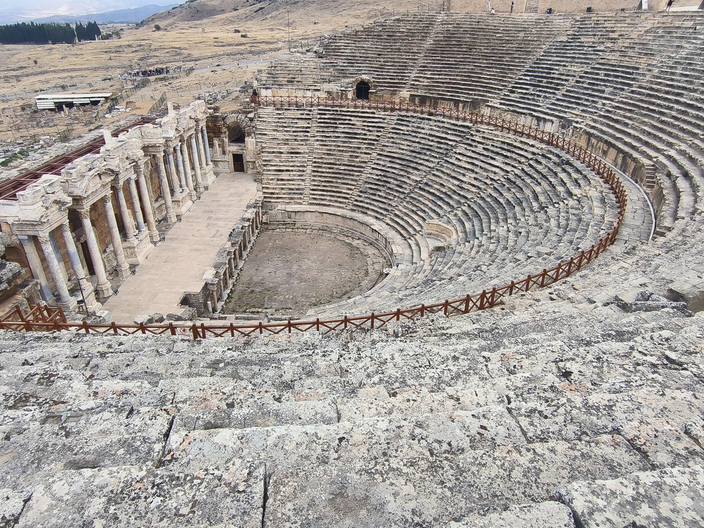 可容纳2.5万多名观众,为全球最大古希腊、罗马遗址,也是古代世界最大的露天剧场。我对这类古剧场比较痴迷,可惜以弗所古城遗址不在此次行程上,但这座希拉波利斯古剧场比以弗所那座历史更为久远,其建成于公元前二世纪,由古希腊时期的帕加马王国所建,至今已有2200多年历史,古罗马帝国第三位皇帝哈德良于公元一世纪下半叶改建,前后耗时约150年,被认为是罗马时代遗留下来最美丽的建筑之一,