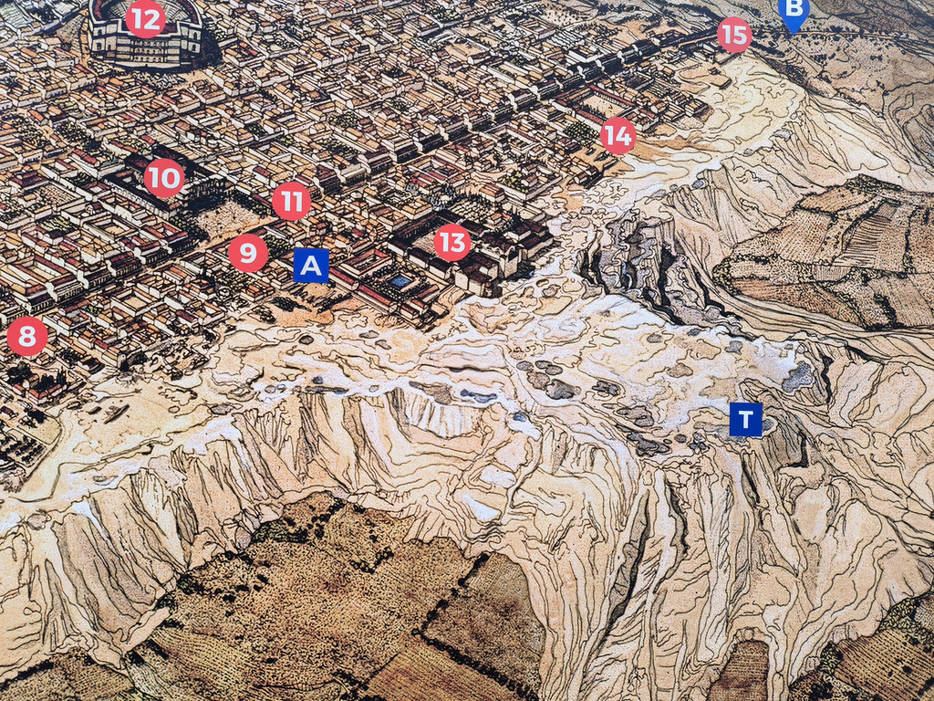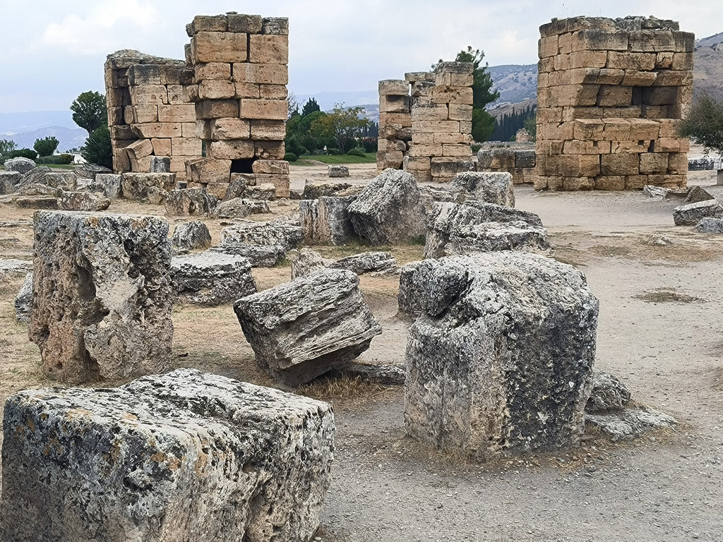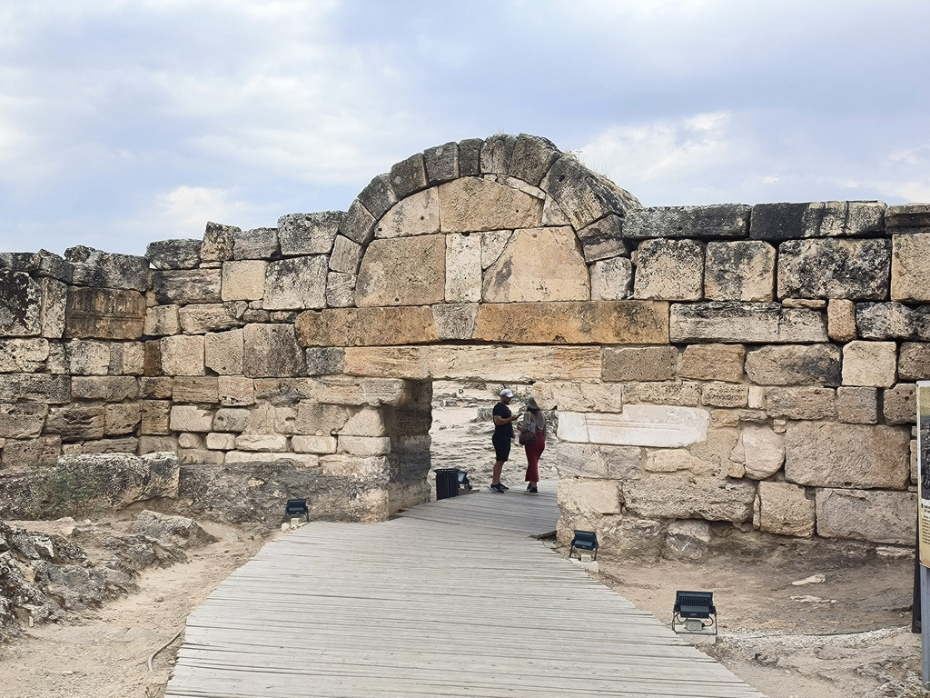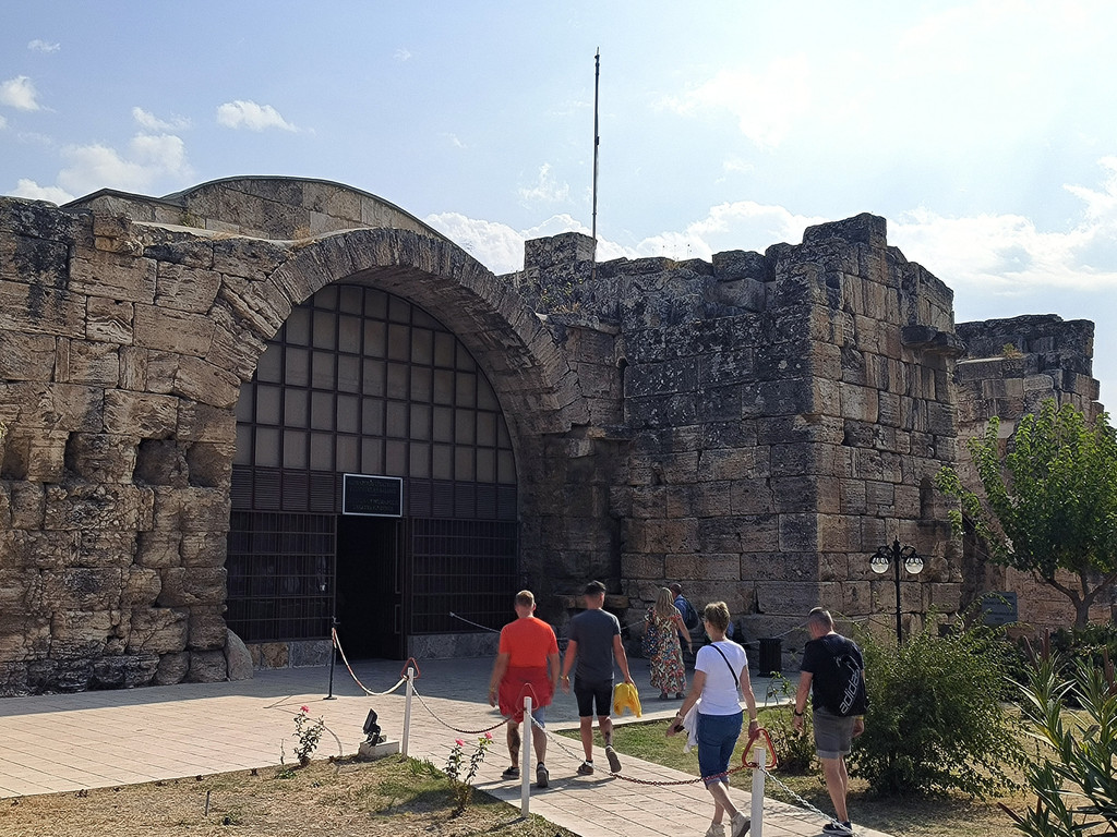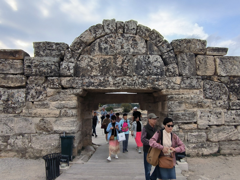 棉花堡1988年被列入世界遗产名录,而且是自然和文化双遗产,但很多人游览棉花堡后却忘记了其上方的希拉波里斯古城,这是一处著名古罗马的遗迹,也是古代丝绸之路的重要站点,因为棉花堡有丰富的温泉资源,自希腊时期起渴望在此沐浴希腊众神恩泽的人们在山顶修建这座古城,希拉波利斯的名字源于希腊语,意为“神圣的城市”,这是一个包含神殿、剧院、市集、浴场等设施的的度假中心,其始建于公元前190年,为古希腊帕加马王国欧迈尼斯二世所建,故承袭了希腊的传统风格,从现场复原的示意看,这座古城的规模很大,