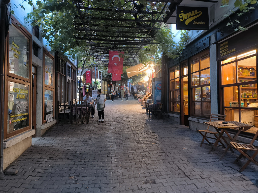 棉花堡是土耳其之旅的最后一个重要景点,由此北上我们重返伊斯坦布尔,途中经过的布尔萨为奥斯曼帝国初期(公元1326年—1365年)的首都,也是丝绸之路的临近西方终点的主要城市,17世纪时曾为奥斯曼帝国的三京之一,现在是土耳其第4大城市,保存着很多奥斯曼式的建筑,因拥有众多的公园和果园,满目所见皆是绿色,因而被称为“绿色的布尔萨”,甚至连清真寺、陵墓甚至轨道交通也是绿色的,此行最后一站是位于布尔萨东部的朱马勒克兹克小镇,2014年被评为世界文化遗产,但实际上没什么看头。