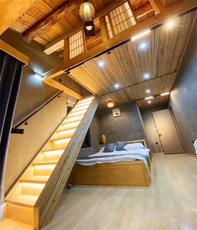 房间设施:民宿两个院子共8个房间,可以容纳24人住宿,房型大床房4间,榻榻米2间,阁楼2间,客房内设计了很多可以互动聊天的地方,每个房间都有一个雅致的名字,部分房间配有浴缸,床硬度适中,体感舒适,床边的智能面板让你不下床就能轻松控制整个房间的设备:空调、灯光都可以根据不同的情景模式随意切换。