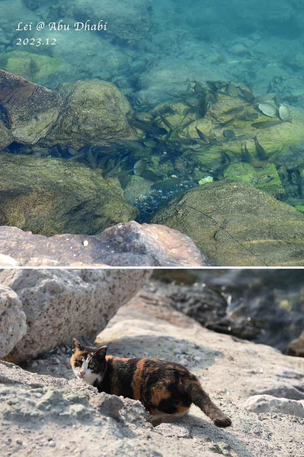 第二天去了海边的民族村,一般的景点,在后门的海边看了一阵子别人喂海鸥,还有清澈的海底有些鱼群,大鱼小鱼游弋,也偶见小海龟,还有一只流浪猫在石头上想抓鱼。