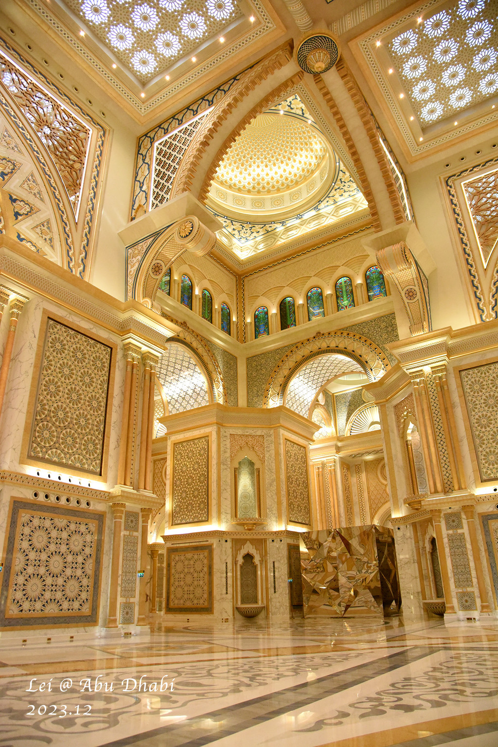 阿布扎比的下午 去了谢赫扎耶德大清真寺,到了才知道要先预约,还好现场及时预约了,要按要求穿着,清真寺用大理石和黄金砌成,确实庄严圣洁美丽,内部管理的很好,把广场圈住留出来,拍出的照片效果都不错。