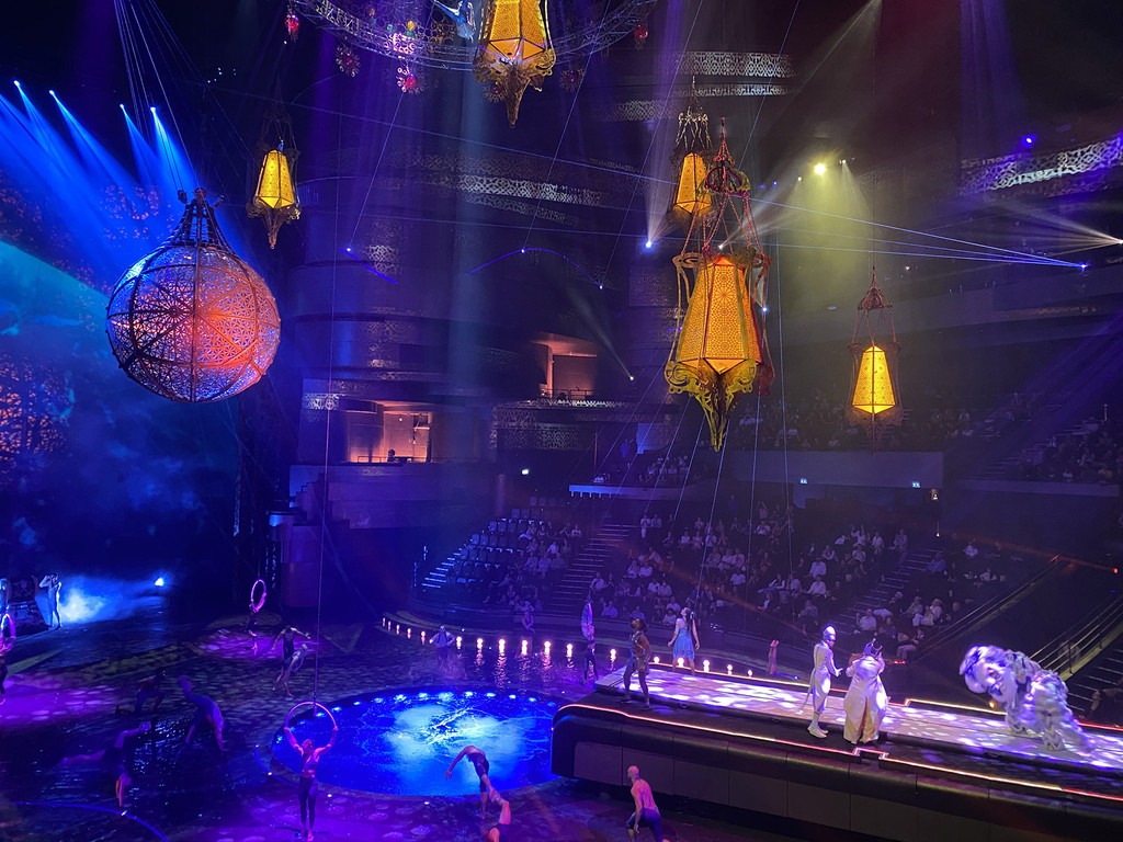 回杜拜后换了酒店又在MALL里逛了书店,喝了咖啡,晚上去看La Perle 水舞秀,4个人2000HKD的消费,说实话 感觉这秀有些牵强,是杂技演出的柔和,但又不是顶级的杂技。演出人员是投入的,评价中等吧。