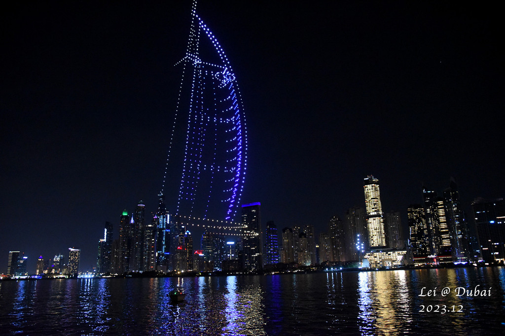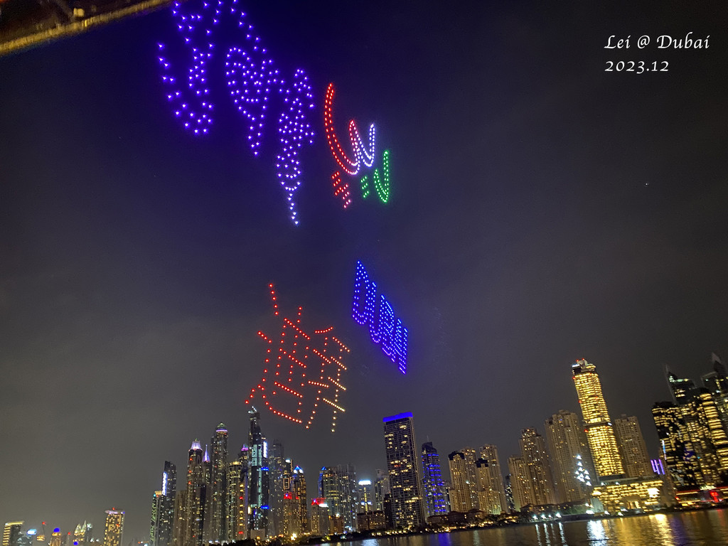 晚上去杜拜湾 坐船出海,杜拜湾两岸商业繁华,酒店餐馆林立,船上的自助餐也不错,价格便宜,船上一位帅哥表演传统的埃及旋转舞,这是我第一次看,在之后的冲沙自助餐中又看了一次,表演的非常热忱,船上的气氛都被带动了,这就是旅行的快乐吧,脱离了千篇一律的日常,撞见一些陌生的燃点。在棕榈岛外回程,看见杜拜湾的无人机表演起飞,这是我第一次看无人机表演,各种造型,还有中文的迪拜,这次在船上看,特别得近,仿佛那些图案触手可及,回程的晚风和灯火让人舒适。