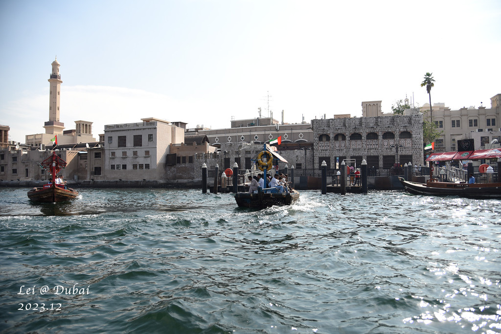 接下来的行程是去了解杜拜的旧城,旧城别具风格,很喜欢这种传统建筑,沙色的平顶屋,沿河而建,杜拜河其实是海湾的海水在沙漠里画了个圈,老城便沿河而建,清真寺,印度庙,各种老市场,有水的地方便有人员往来。在码头花1元钱便可坐船到对岸,好像又回到了威尼斯的大运河上,有趣的体验。