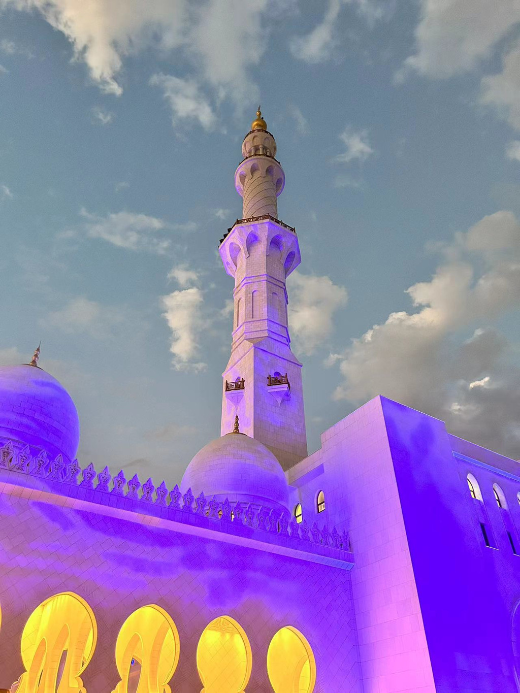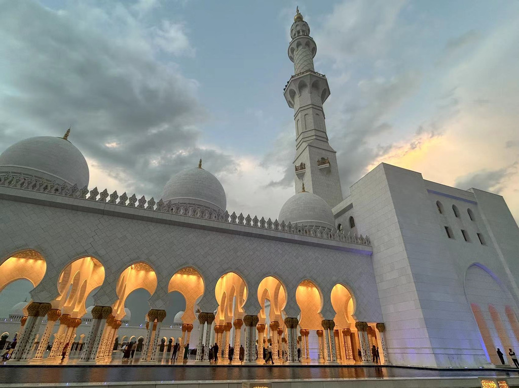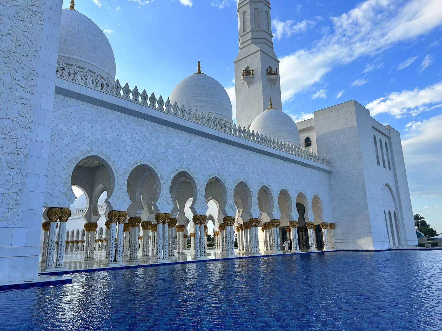 下午根据友友们的攻略安排傍晚去阿布扎比第一名景点,大清真寺。大家要注意虽然这个景点不收费,但是要预约取得预约二维码才能进,而且中国手机不能网上弄,只能现场机子拿号。之前在所有攻略中都没看到,所以我们排了一个小时队进不了才又出去机子取号,幸好和保安叔叔说了,不用重新排队直接进去,也是一番折腾。早在飞机上我就看了大清真寺的建筑纪录片,全球最大的水晶灯,全球最大的手工地毯,全世界搜罗最白的大理石,全手工画的花纹......如果在迪拜我看到的是钱堆出来的奇迹,在阿布扎比清真寺,我感受到更多的是虔诚(和钱)堆出来的奇迹。那种文化带来的震撼无以言表,他们用自己的手、努力和心血,汇聚成这个伟大建筑,向世界介绍他们的信仰。