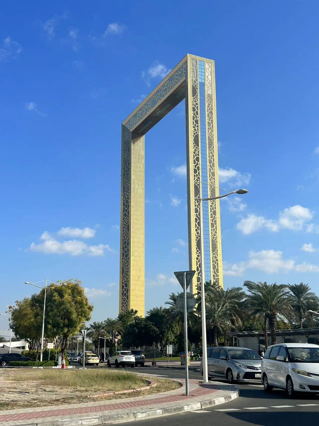 第三天就是City walk了,上午我们去了哈拉法塔,登高望远,没啥特别,就是一个游客的必修课。连着的迪拜mall,也没有什么特别,倒是户外广场和周边环境真的很舒服,有时间可以喝个下午茶发发呆。但想着晚上还回来看喷泉,实在坐不到一个下午,我们就去了黄金相框打卡。中途还在地铁上看到了未来博物馆。