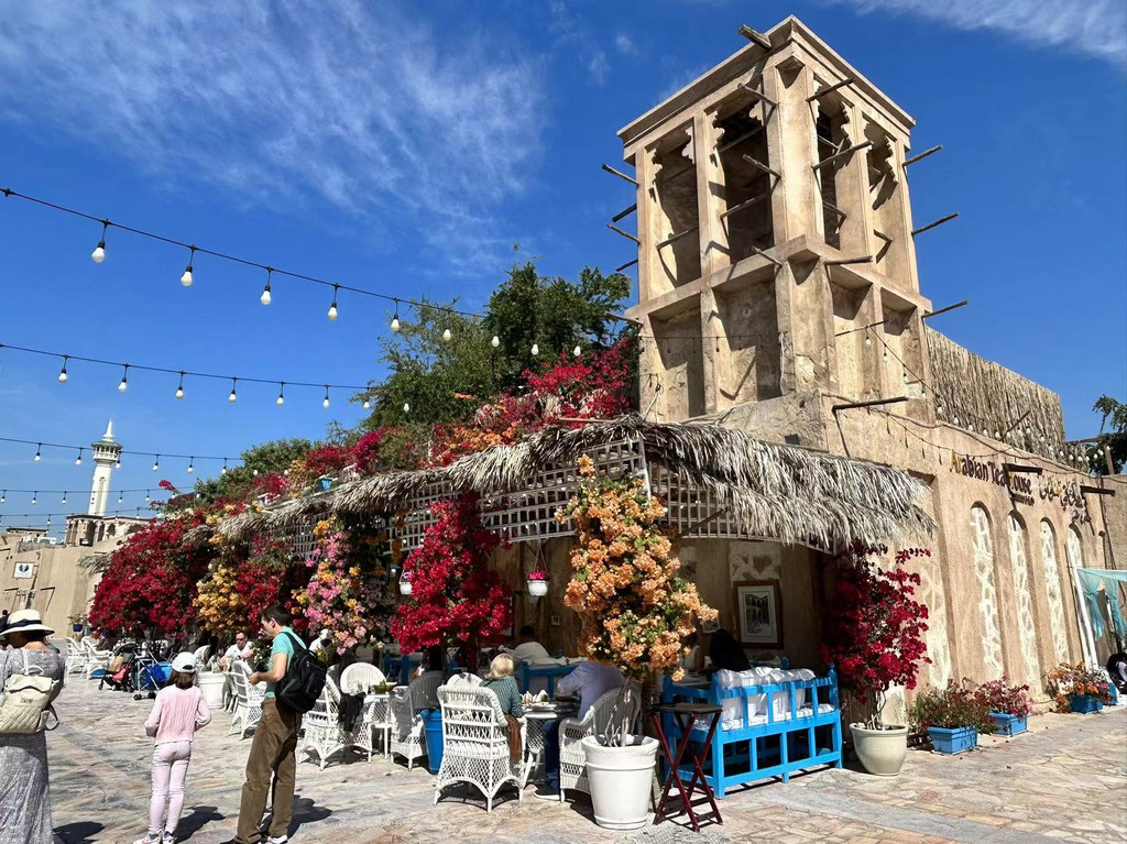 第四天进入老城区,是另一个很值得去的地方。迪拜的新区固然fancy,但老城区的中东风情辨识度更高,特有地域特色。阿法迪历史街区的门面就是网红餐厅,我们也在这里吃了,是我们吃了这么多次阿拉伯餐里面,觉得最好吃的(但依然是阿拉伯餐)。整个街区不大,但是很干净,也有些小壁画增加趣味度。
