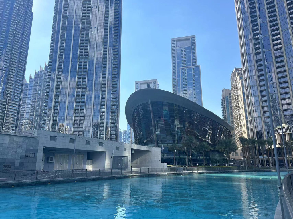 圆梦时刻终于到了,我们在迪拜mall转了一圈,实在不知道吃啥,而且那天是中国时间的除夕/初一,我们又回到了鼎泰丰吃年夜饭。。。(没错,二刷)喷泉也开始了,第一场6点半开始,在落日余晖的映衬下显得格外温柔,相机是拍不出来的,因为迪拜喷泉特别长,水姿与音乐完美配合,崮中美感与心灵震撼只能亲身体验。晚饭期间在迪拜mall这边看了3次,饭后我们又走到了湖对岸和中间的桥上再看了2次,发现最佳的观赏区其实在迪拜mall对岸,可以一并看到哈利法塔的灯光配合。原来每半小时一次的喷泉每次音乐和喷泉效果都不一样,有时间可以边吃边看度过一个美好晚上。