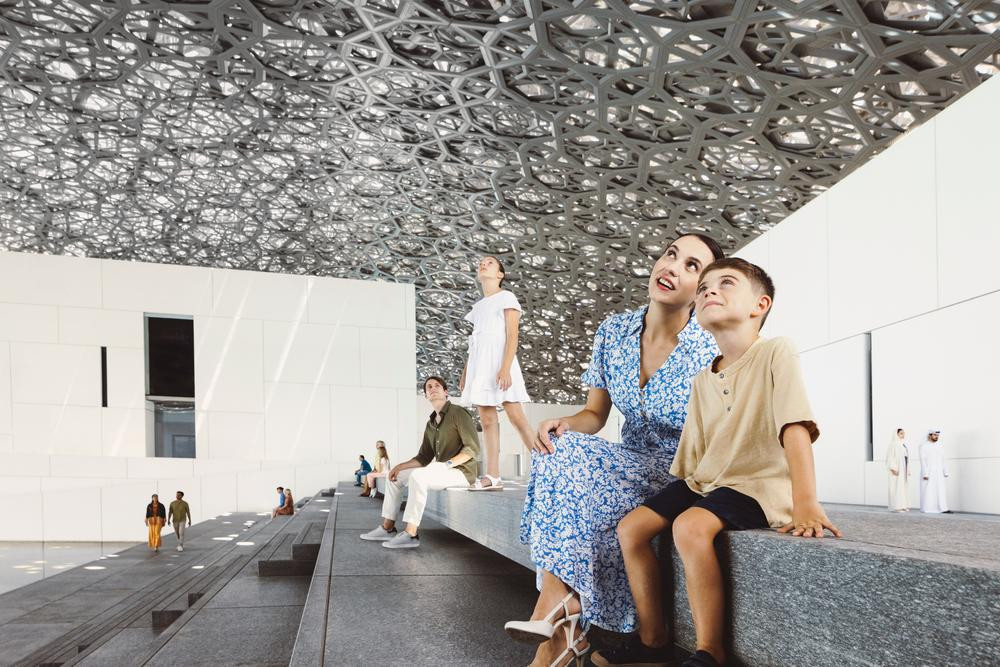 当阳光穿透阿布扎比卢浮宫(Louvre Abu Dhabi)标志性的穹顶,洒下“光之雨”,一场跨越时空的艺术之旅便已开启。其独具匠心的布展逻辑——所有展品按时间顺序从史前至今并置陈列,访客得以欣赏人类跨越千年的创造力,感受不同文化之间的交流与碰撞。当大人们沉醉于世界级的艺术瑰宝时,孩子们可以在专属的儿童博物馆里,通过量身定制的趣味导览,让艺术的种子在心中悄然发芽。