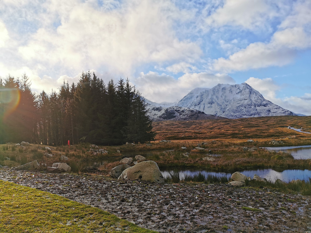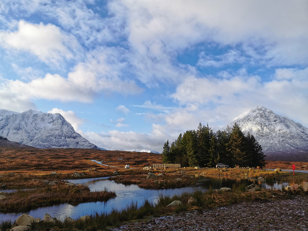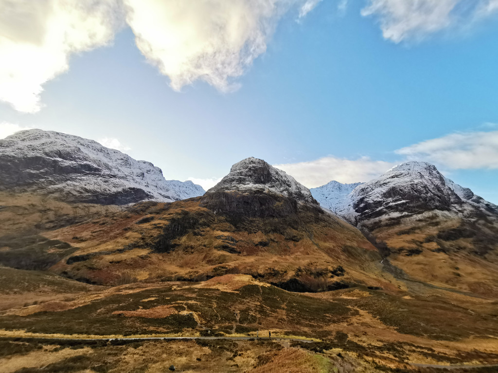 到达福斯桥的时候天都还没亮呢,英国的天亮地晚黑地早,不过相比之下高地和爱丁堡的天已经算是很晴朗了,之后在伦敦才是暗无天日呢。我们一路往上开,天愈来愈亮,景愈来愈美,扑面而来的美景简直让我们有些招架不住了,无奈在车里拍不真切。