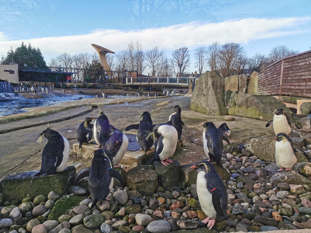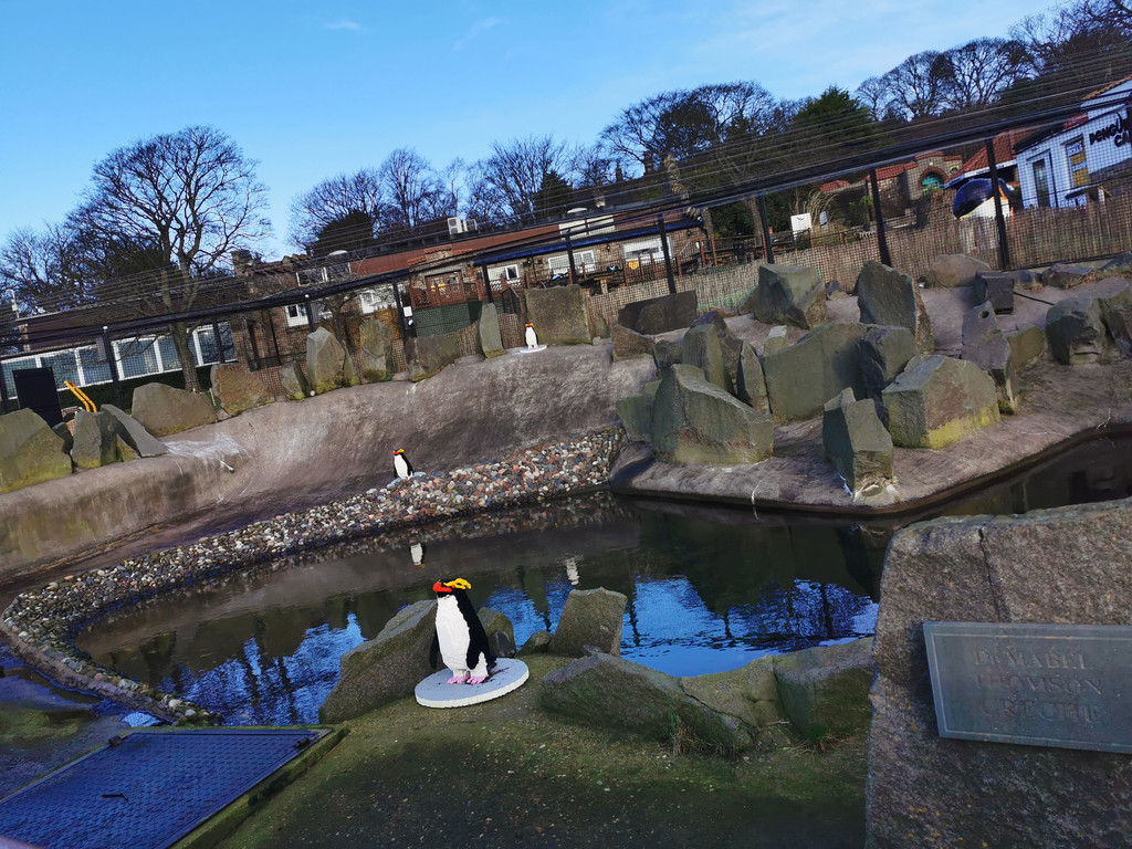爱丁堡动物园,好冷清一动物园,除了一个班的初中生们来春游(抑或是冬游?)和两个大长腿美女陪宝宝游玩,真的就没有看到其他人了。人少动物也不多,连空气中都透露着凄凉。这侵入骨髓的冷风,让我变成了一个没有感情的打喷嚏机器。我们仿佛去了一个假的动物园,考拉和熊猫都害羞到拍不到正面,还有很多真假混合动物需要辨别,比如一群真企鹅和乐高玩具拼的假企鹅。我同学胆子小不敢去野生动物区域,我瞅着它们离我们挺远的就有些跃跃欲试,可放眼望去一个工作人员都没有,确实有点让人担心,于是悻悻然地回去了。相比之下我更喜欢清迈的夜间动物园,一年前和长颈鹿的亲密接触让我至今难忘。