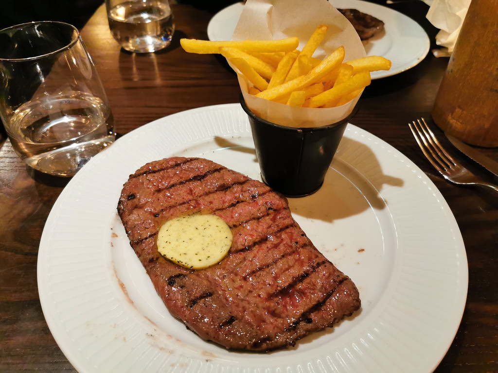 由于餐厅没有什么人,我便四处走动拍了些照,却发现waiter的脸色不太好看,但是来到我们桌前服务的时候却是堆满了微笑的,不知道这算是“专业”还是“变色龙”呢?牛排有些焦,并没有宣传地这么好吃,徒有虚名,拔草了。吃完晚餐虽说在18:00左右,但爱丁堡已经黑成上海深夜的模样了,我们两个女生走在这样的路上还是有些害怕的,一路小跑着回到了酒店,结束平静又寒冷的第一天。