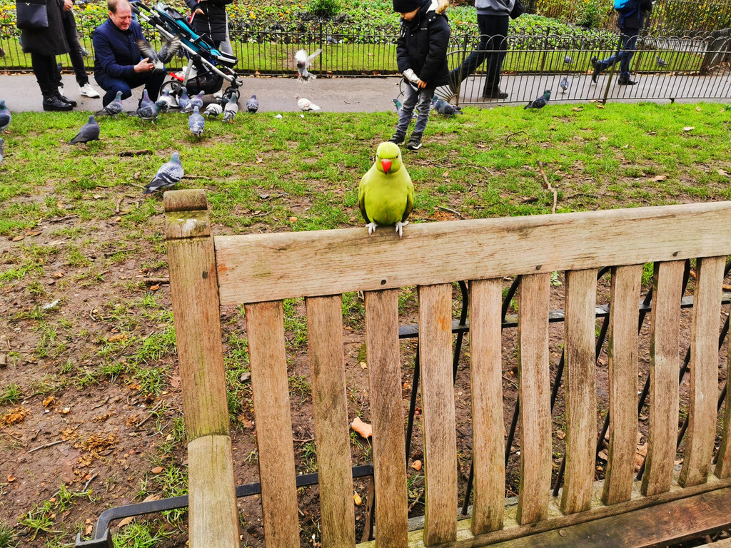 沿途的风景也不曾错过,一片绿茵地、一个跑道和许多奔跑者,一只不怕人的小鹦鹉,好想像它一样自由自在。