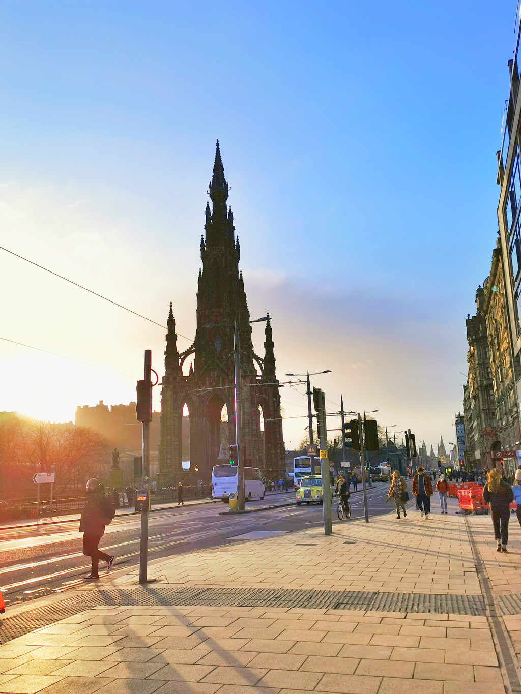 飞了11个小时在阿姆斯特丹转机,转机要等3.4个小时,那个机场又破又不便宜,只好各买了杯咖啡,休息一会儿。之后又飞了大概1.2个小时吧,终于抵达了爱丁堡史基浦机场。搭乘公交车去酒店,爱丁堡的公交车有些任性,车上有stop按钮,要按这个stop按钮才会停车,不然可能会一直开下去,直到天荒地老;买票也不设找零,明明司机会打印车票给你,却一定要投币,可能是为了节省时间吧,但我们没法提前知道每辆车的车费多少,也没有他们的公交卡,只能凭运气了,在一堆大大小小的硬币里找出确切的数字着实太难为我了,所以我都是让他们帮我挑选,省了些麻烦。由于不熟悉路,我们提前一站下了车。虽说爱丁堡不大,平时走走没啥大问题,可我俩一人一个30寸的行李箱,这爱丁堡的斜坡路让我有种又去到重庆旅游的既视感,再加上那天妖风阵阵,我的帽子、手套都被吹掉过,实在是太顾此失彼了。
