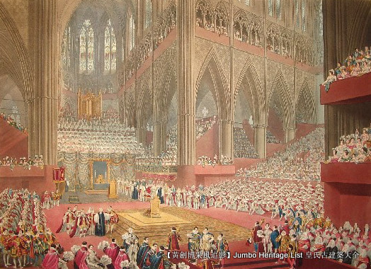 1066年,哈罗德二世在此加冕,他是第一个在此加冕的国王。同一年的圣诞节,征服者威廉也在此加冕,从此之后一般的英国君主(除了爱德华五世和爱德华八世)都在威斯敏斯特教堂加冕。绝大多数的英国君王都由坎特伯雷大主教加冕,只有少数几个君王例外,例如哈罗德二世和征服者威廉是由约克大主教为其加冕的,爱德华二世由温切斯特主教加冕,因为坎特伯雷大主教不在英格兰、玛莉一世由温切斯特主教加冕,因为坎特伯雷大主教是新教徒、伊丽莎白一世是由卡莱儿主教加冕,因为资深主教都是天主教徒且拒绝为新教女王加冕、威廉三世与玛莉二世由伦敦主教加冕,因为坎特伯雷大主教拒绝承认新君。