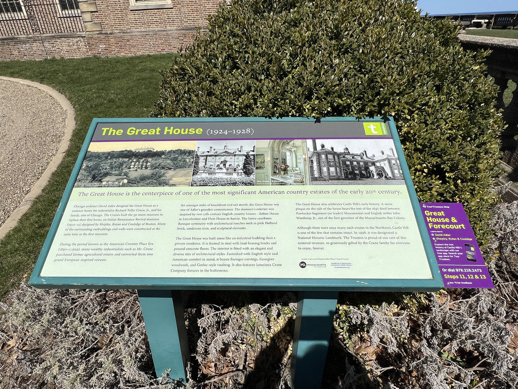 在城堡山上可俯瞰四周,农田、牧场、海滩(鹤滩,号称马萨诸塞州最美海滩,海滩的收费可能要20)、辽阔的一眼望不到边的大西洋以及大西洋沿岸,还有城堡建筑的旁边雕塑。记着这里的纬度是42.68534,经度是-70.77925(高纬度地区)。
