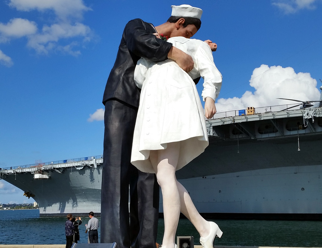 此情此景,刚好被美国摄影师艾菲列德,捕捉下了的这一精彩的历史瞬间,同时,也由此成为美国人民欢庆二战结束、庆祝反法西斯战争胜利的经典镜头。不仅如此,当时的这一瞬间还成了美国《生活》杂志的封面照片。由此,这张照片被誉为“胜利之吻”广为流传,如今根据这张图片被放大成塑像,也因此成为圣地亚哥港的标志。