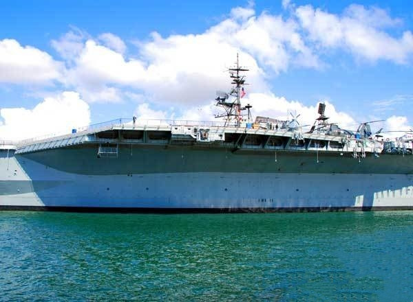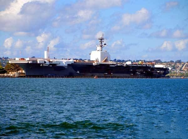 除了上述的“胜利之吻”和纪念二战胜利海军的群雕外,在此最为引人注目的莫过于岸畔停泊着的已经退役的中途岛号(Midway)航空母舰。如今,该舰已成为来圣迭戈港旅游者们,最为重要的观光所在地之一,大凡来此的游客们,都以它为背景拍照留念。