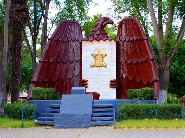 我们首先来到这里的独立英雄纪念碑。这是一座以一支棕红色的雄鹰为主体背景的纪念碑,鹰头位于中间白色碑体的正上方,鹰的两个翅膀张开双臂护卫着碑体,两支伸出的鹰爪,拟人化地紧握着碑体下方的两侧。中间白色碑体上面是金色图案与文字,记载着这座纪念碑的历史。