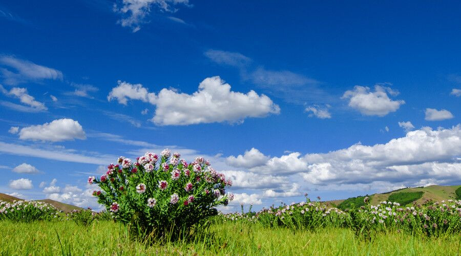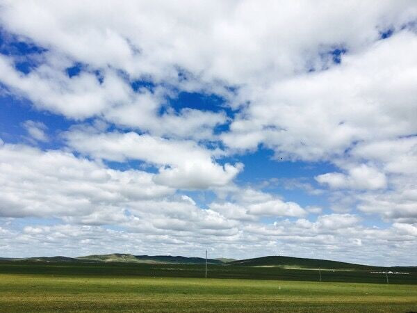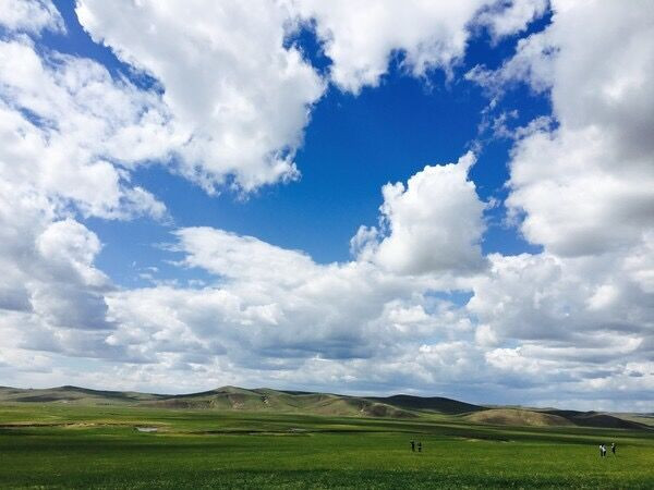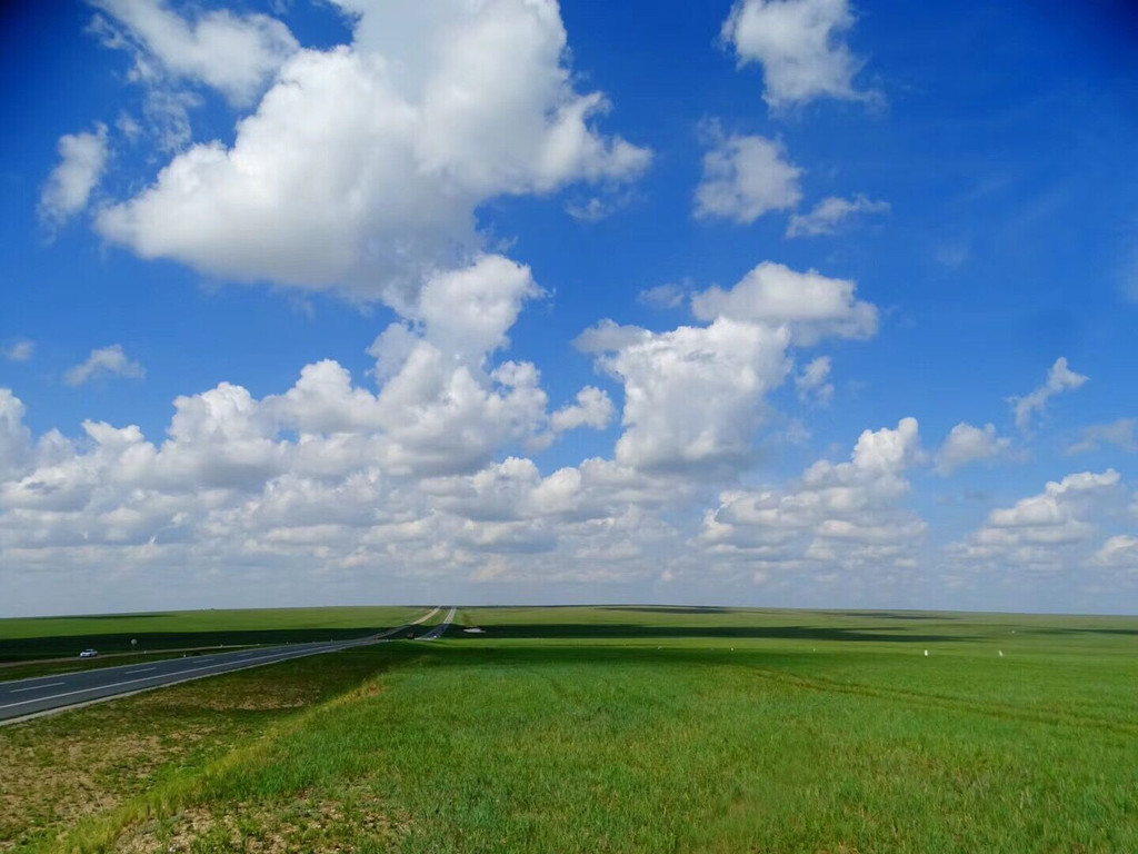 在这里遇见湛蓝透明的天空,朵朵白云下是一片广袤无垠的绿色草原。
